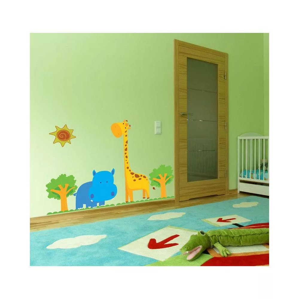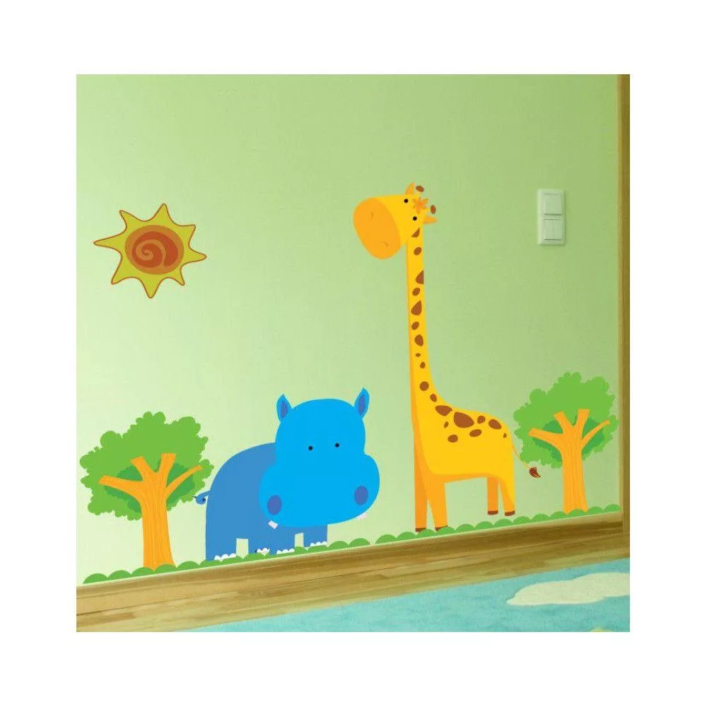 Kids wall stickers Hippopotamus, giraffe, Happy Blue Hippo & Giraffe