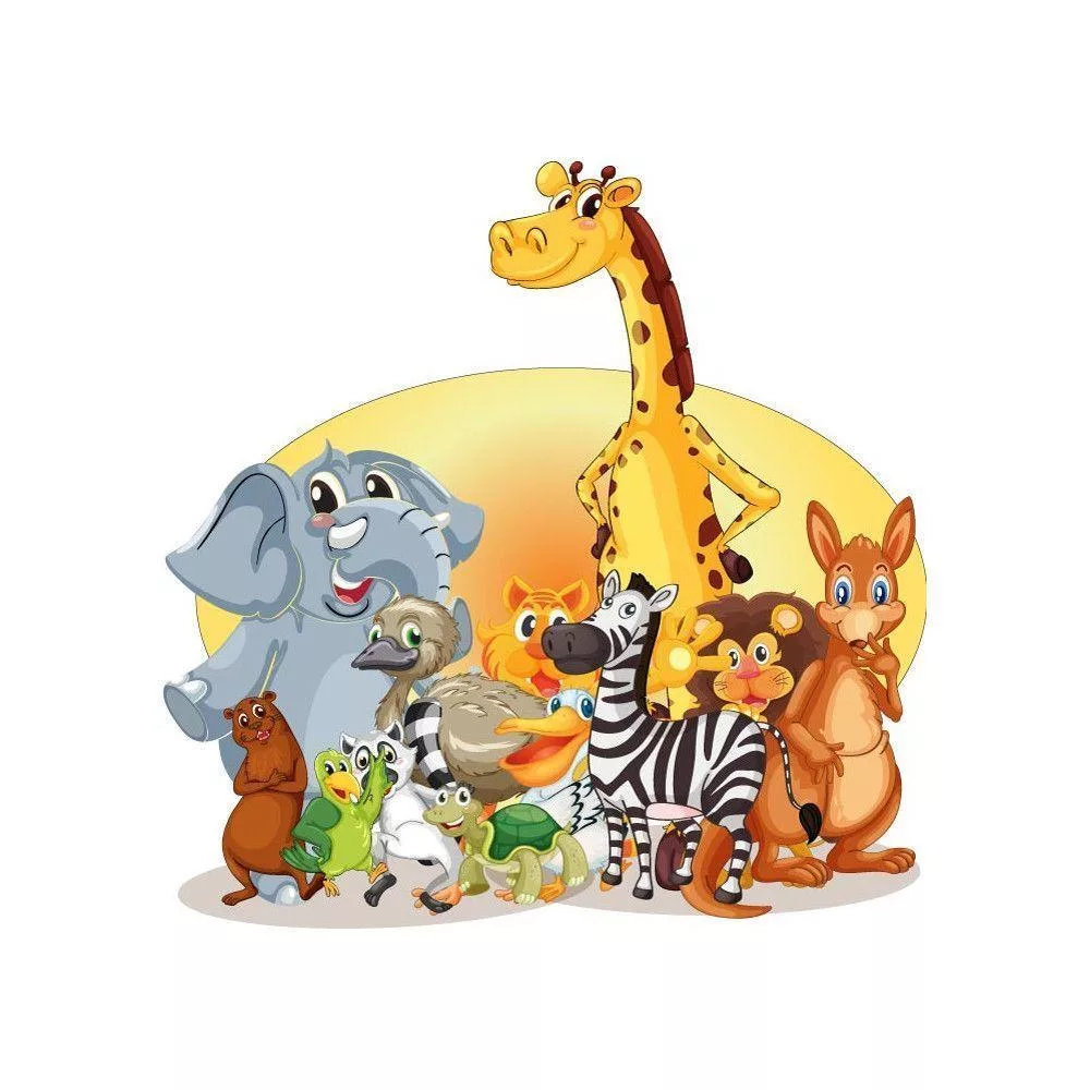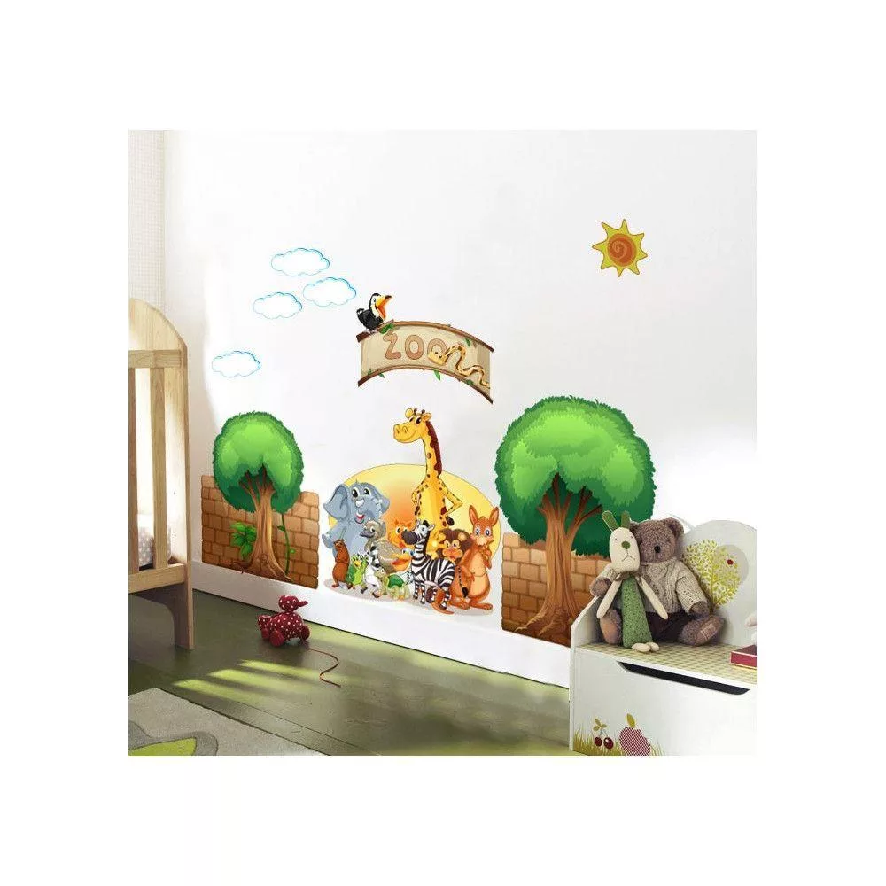 Kids wall stickers Zoo with animals, trees, clouds, sun