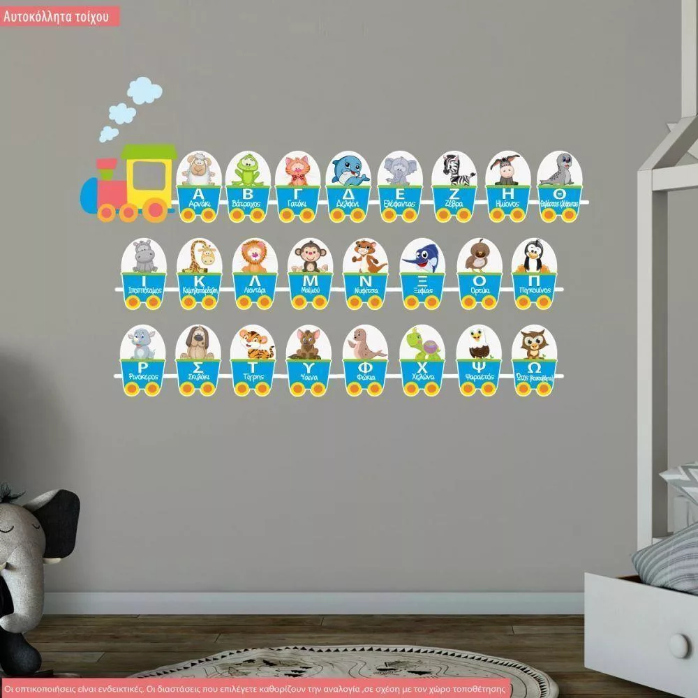 Wall stickers Train alphabet and animals blue