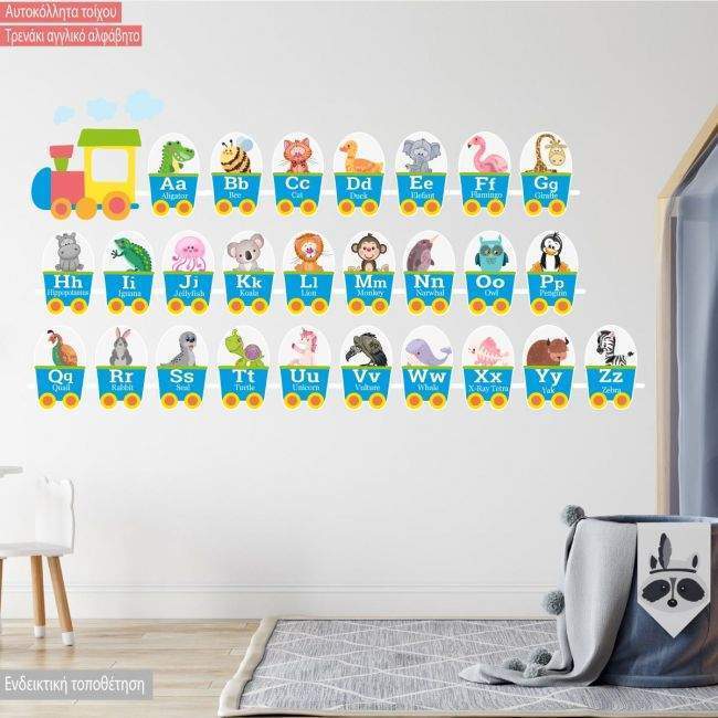 Wall stickers Train English alphabet and animals blue