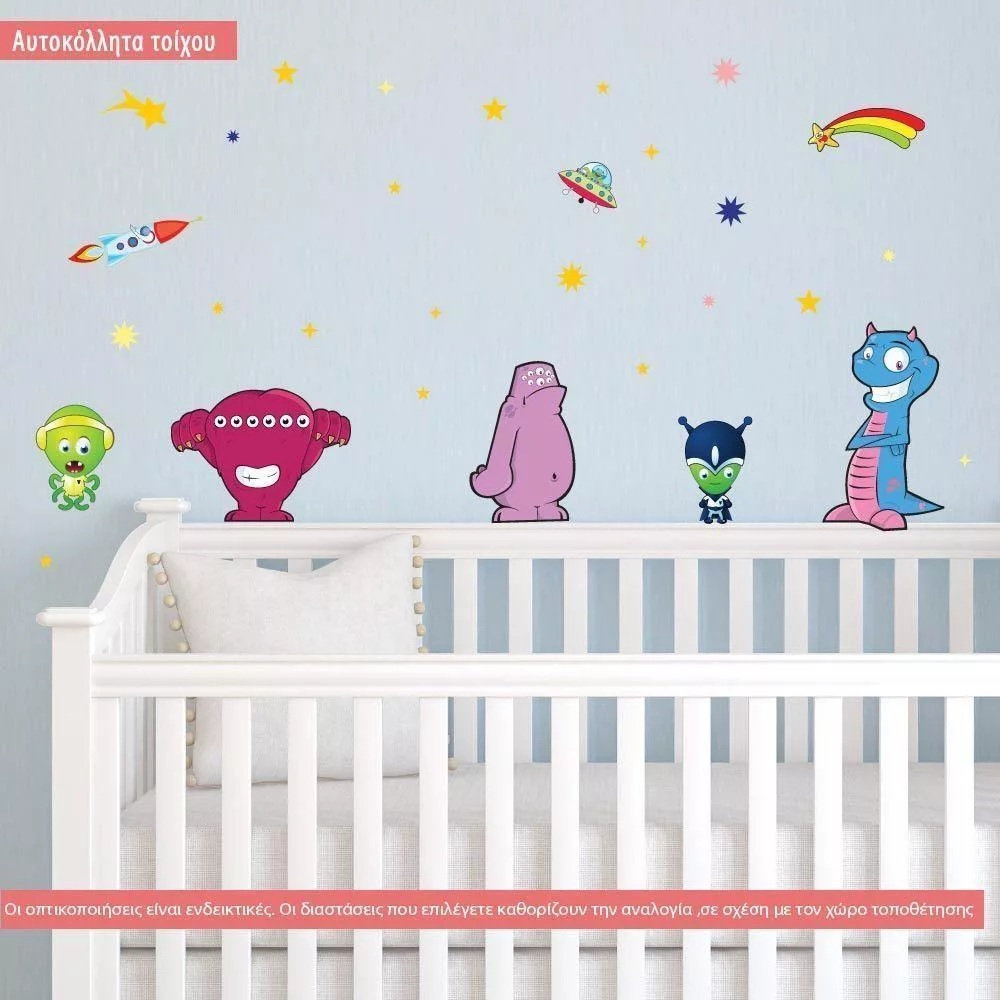 Kids wall stickers Cute, alliens, spaceships, and stars.