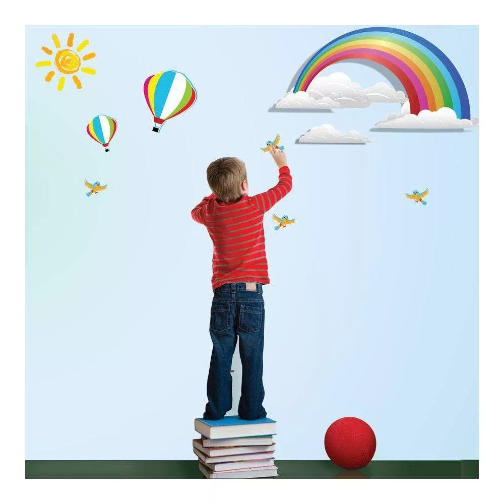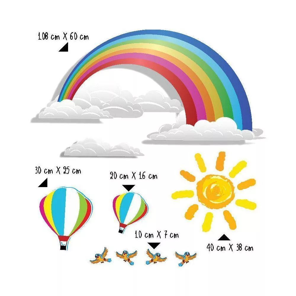 Wall stickers Rainbow, hot air balloons, sun, birds
