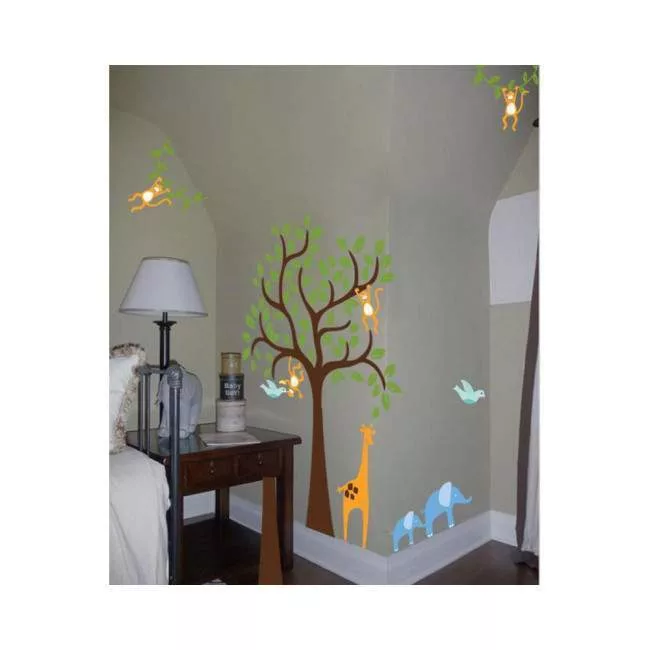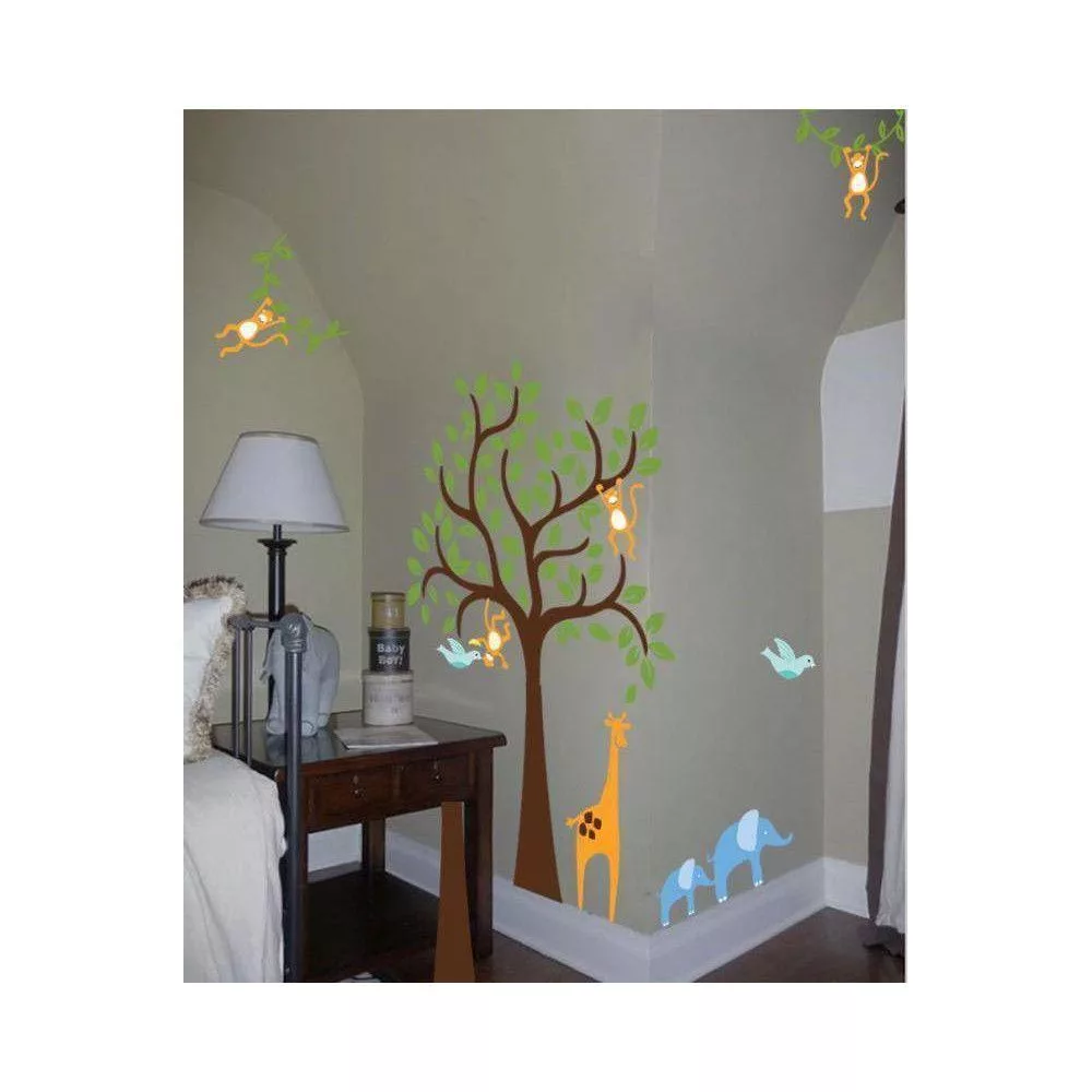 Kids wall stickers Tree with giraffe, elephants and monkeys, combination 3