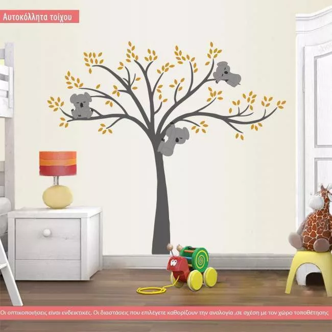 Kids wall stickers Cute koala, gray tree