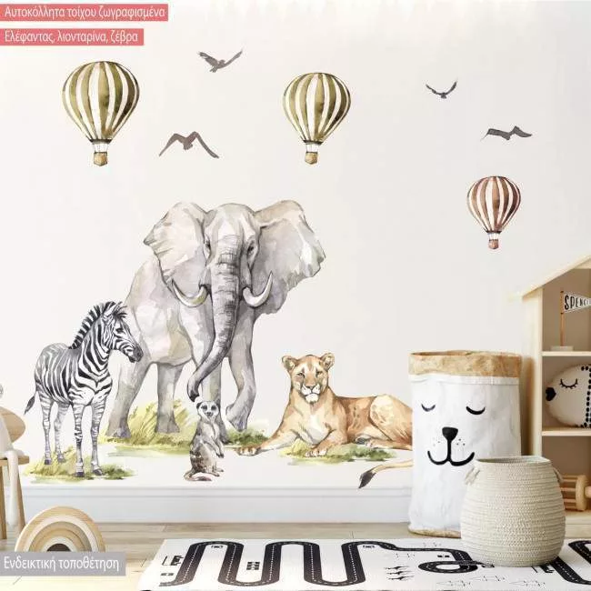 Wall stickers watercolor, Giraffe. lion and more