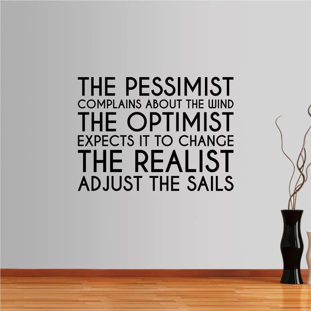Wall stickers phrases. The pessimist , the optimist, the realist