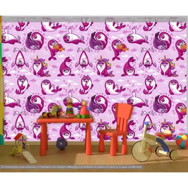 Wallpaper Baby seals pink, pattern