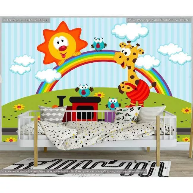 Wallpaper Giraffe travels with train