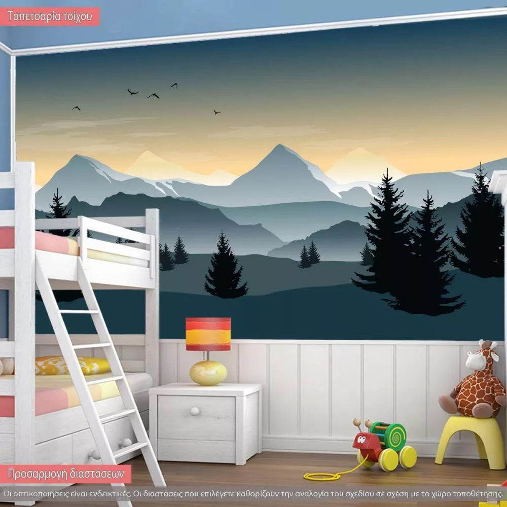 Wallpaper Vector landscape silhouettes, trees, mountains