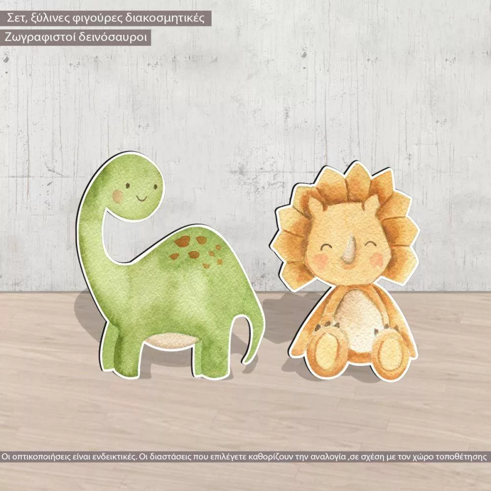 Baby dinos watercolor, set 2 pc wooden figure printed