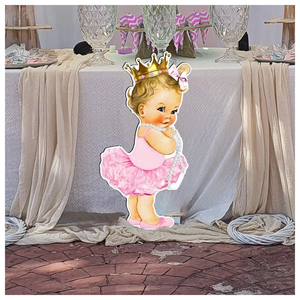 Cute ballerina wooden decorative figure printed
