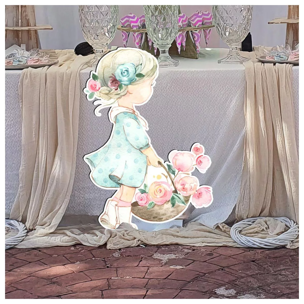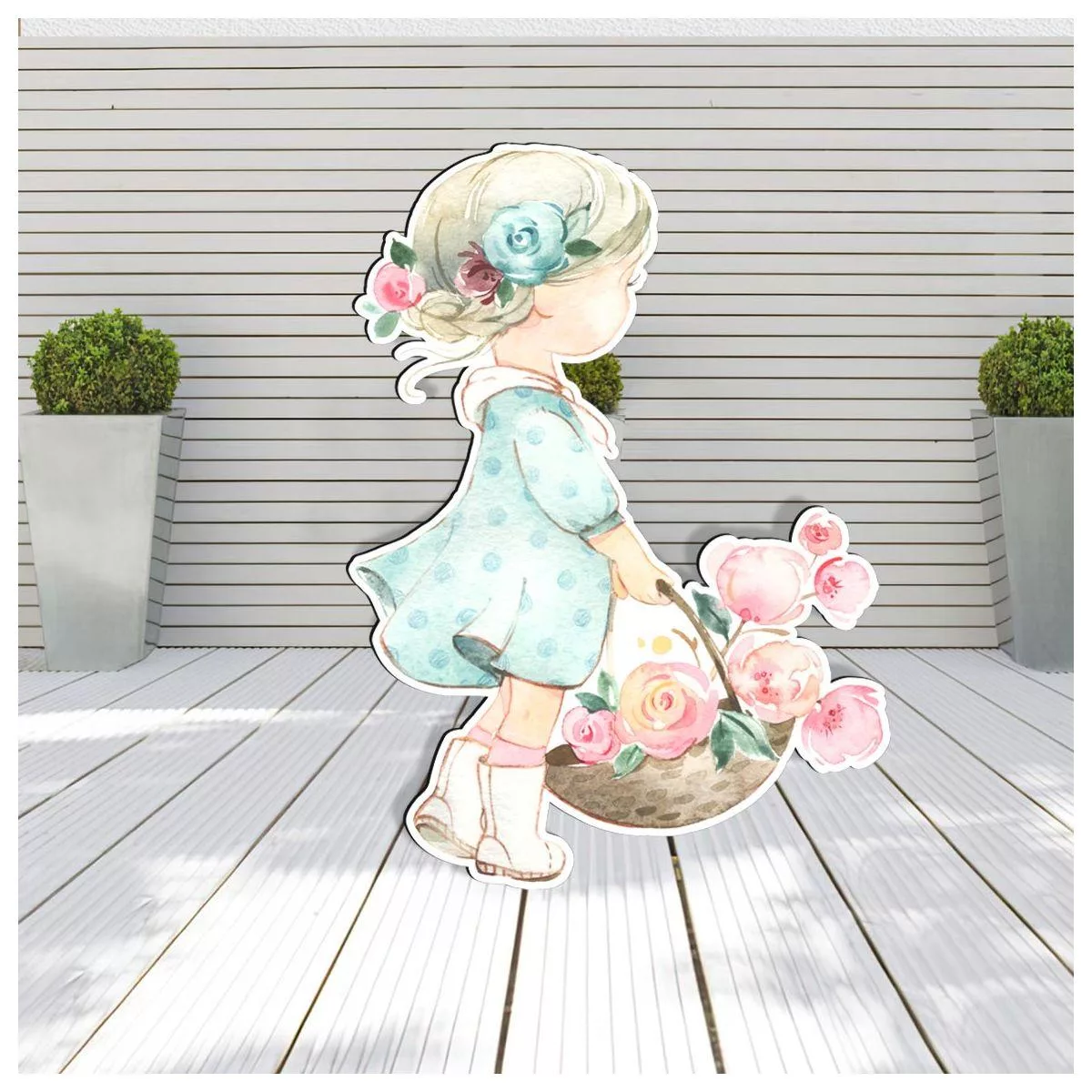Cute ballerina wooden decorative figure printed