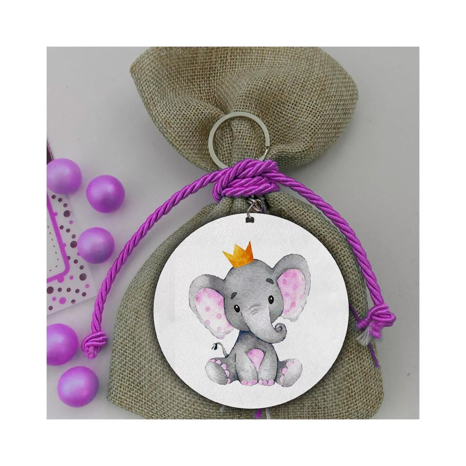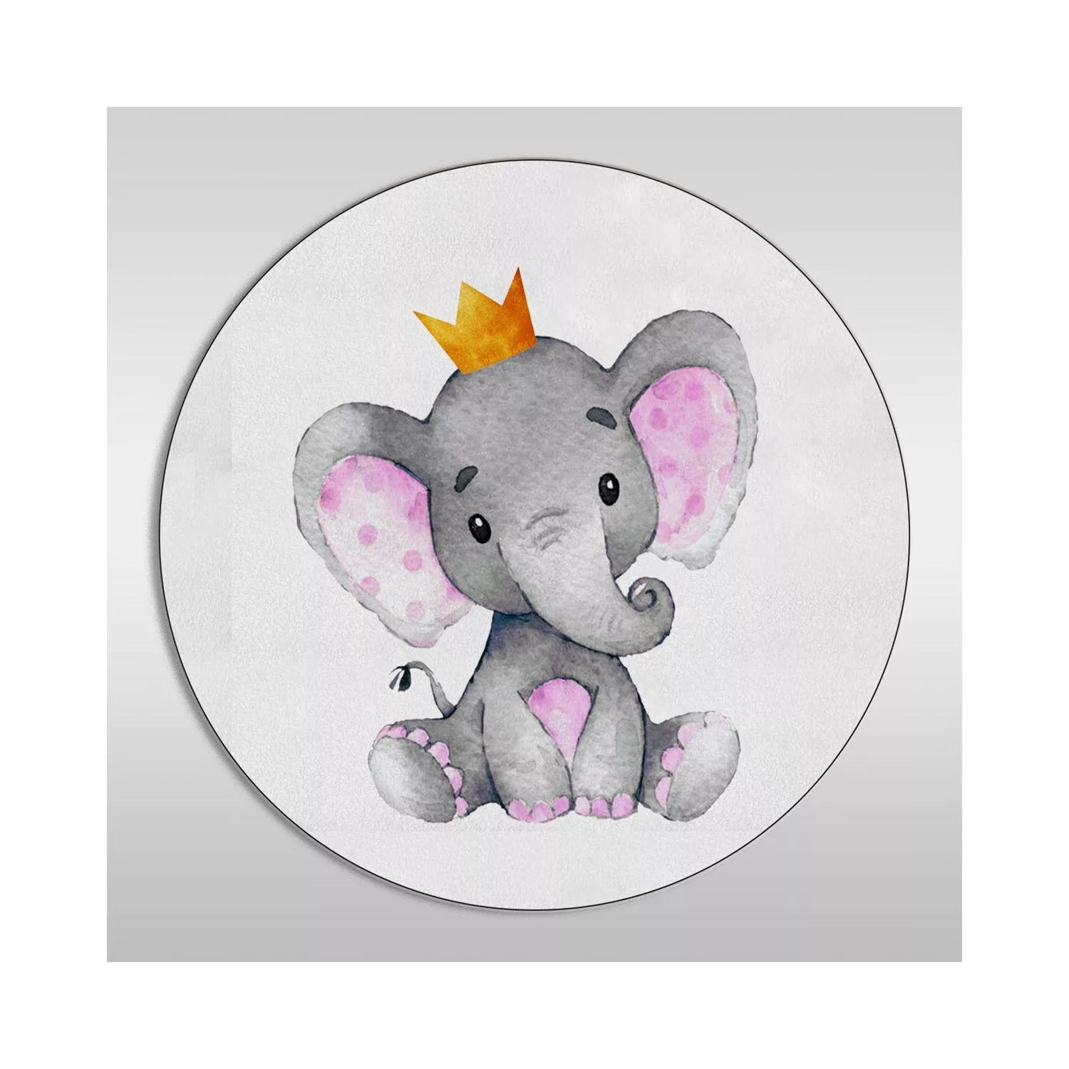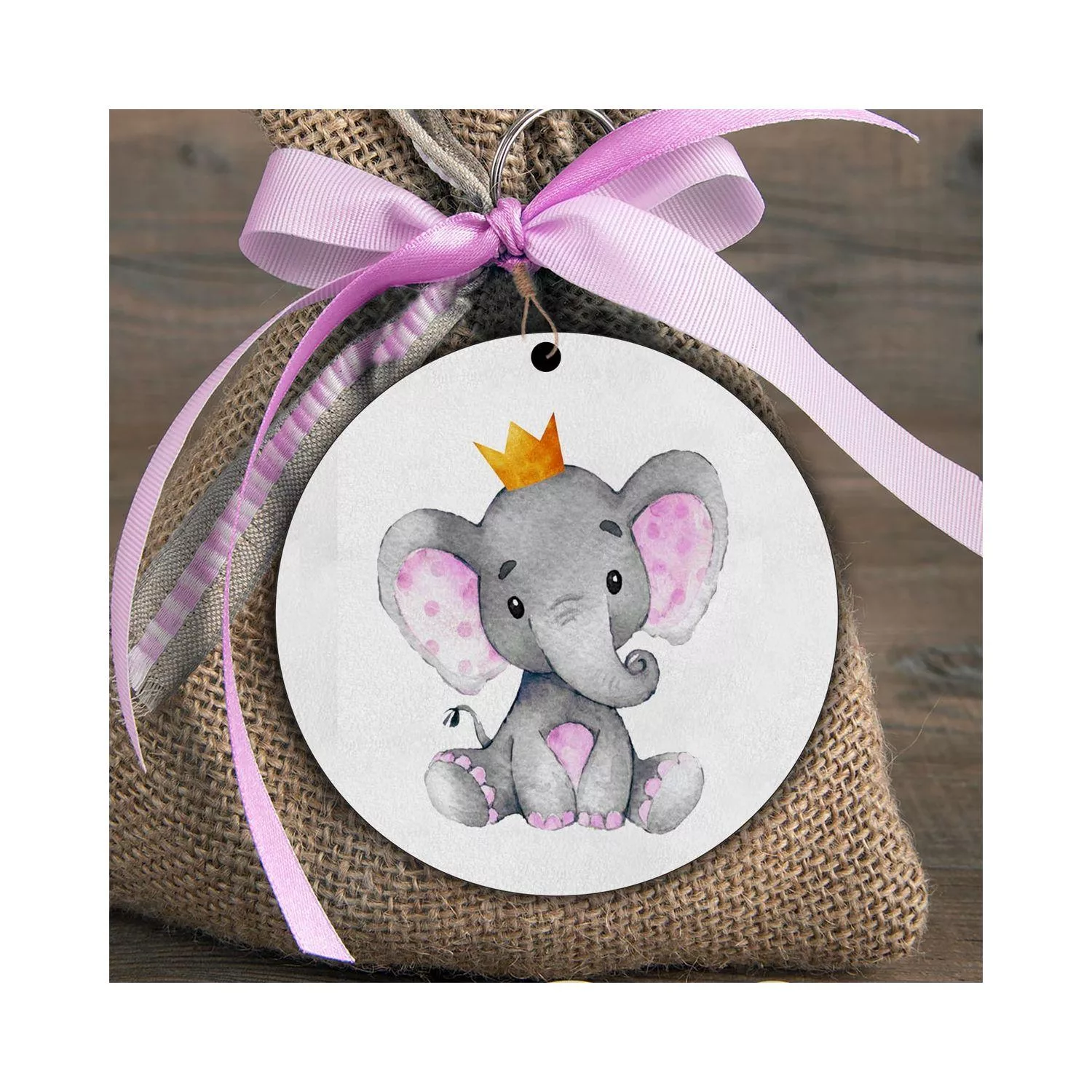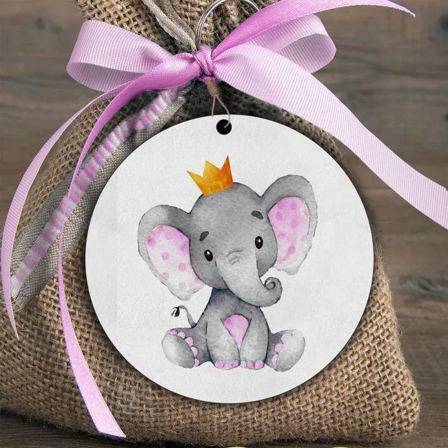 Wooden figure Elephant pink with crown watercolor