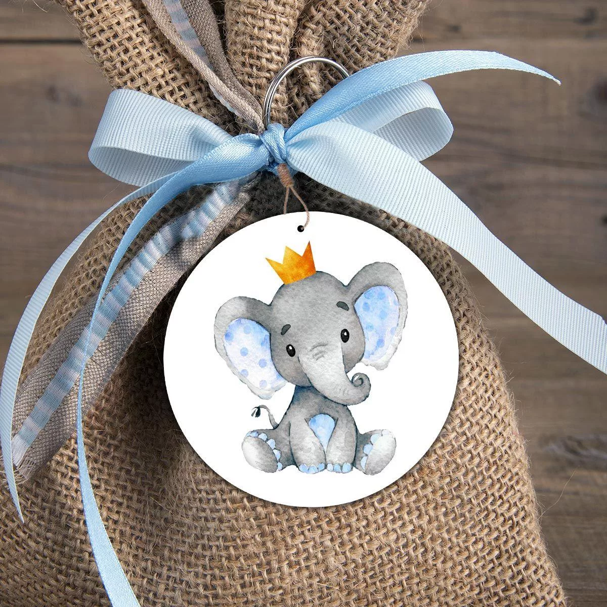Wooden figure Elephant with crown watercolor