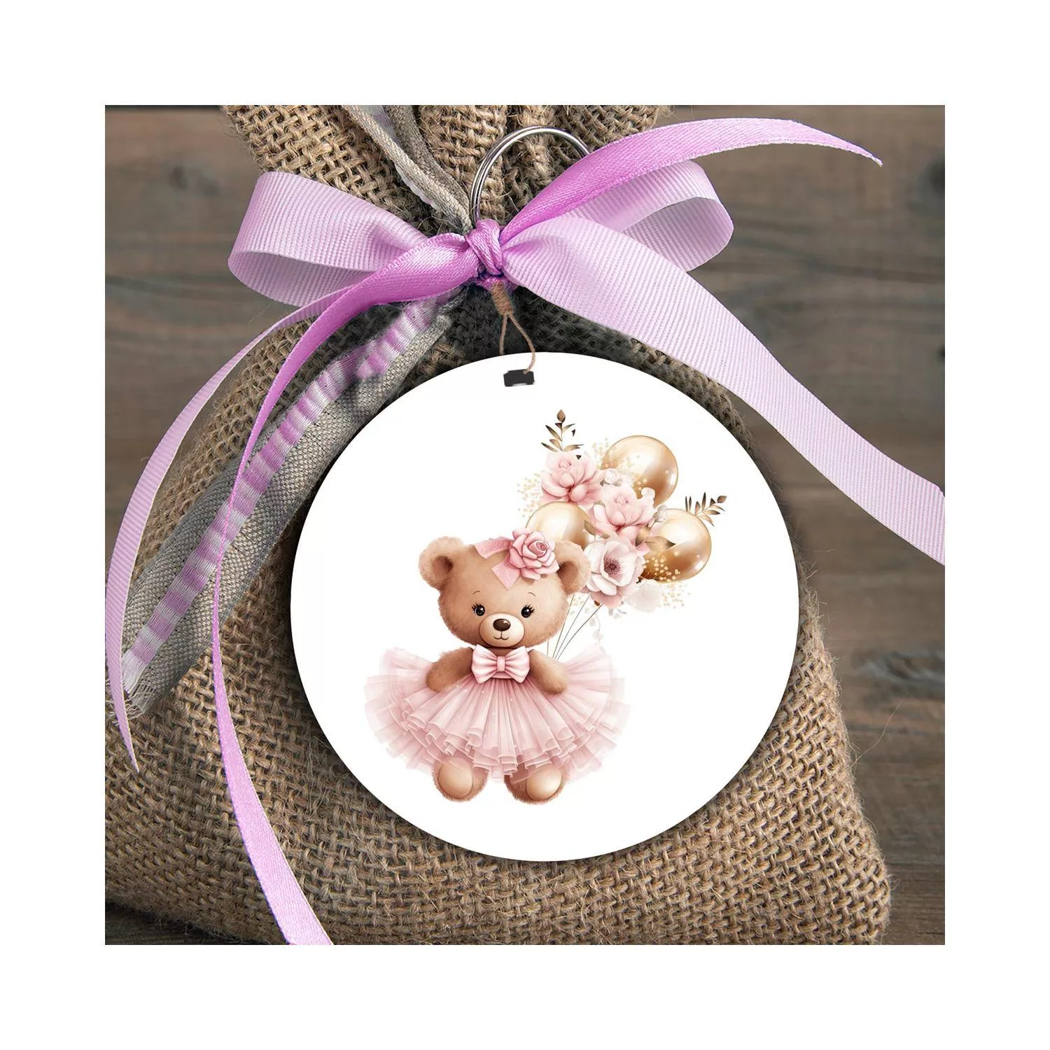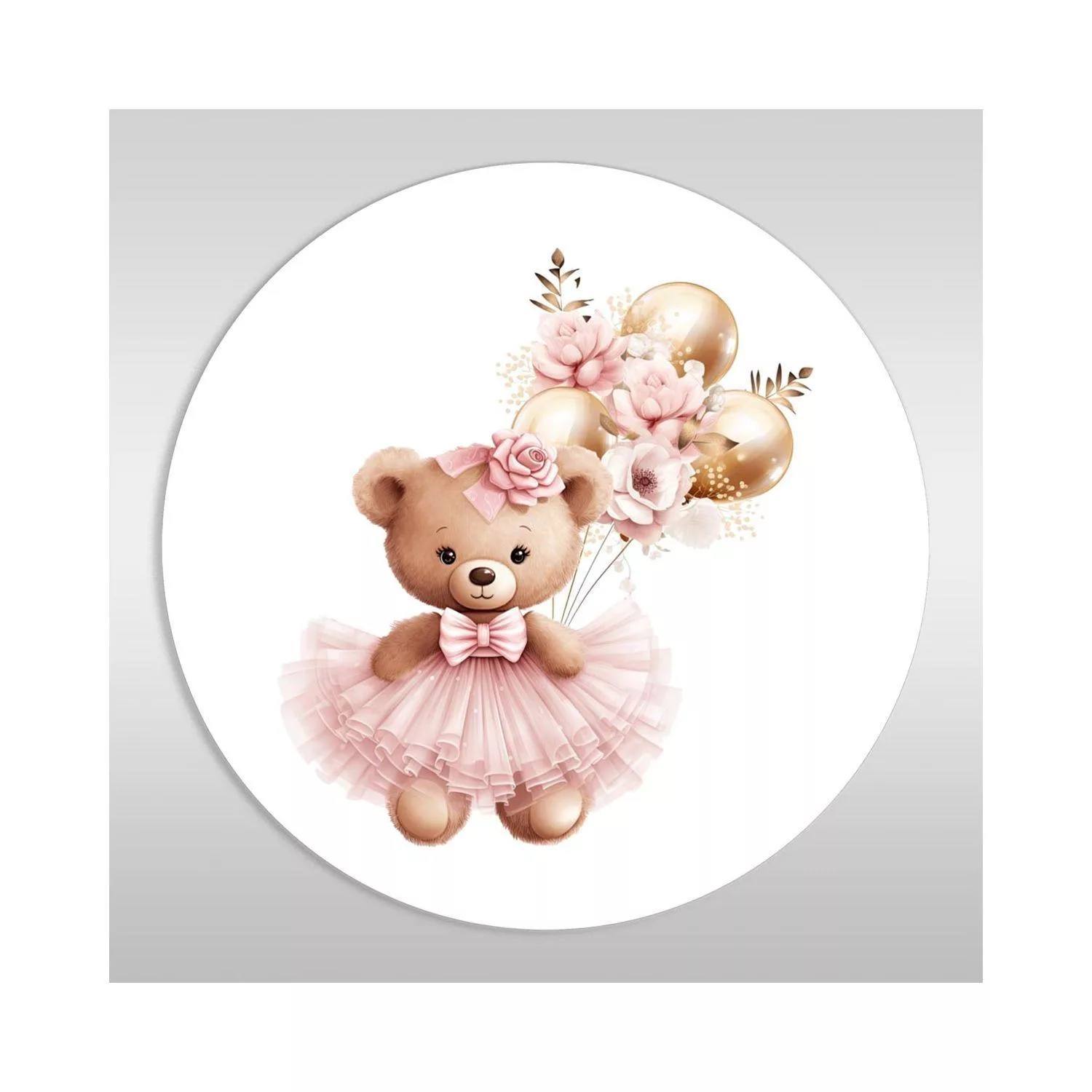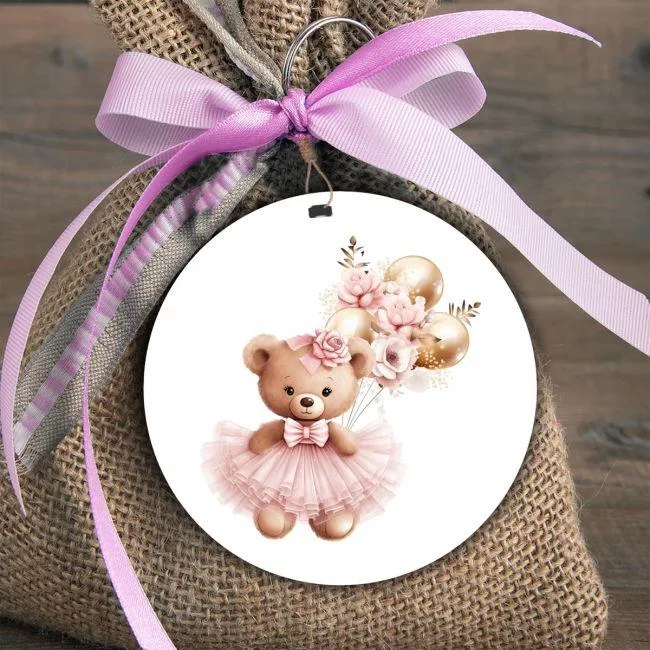 Wooden figure printed circular Cute bear golden balloons