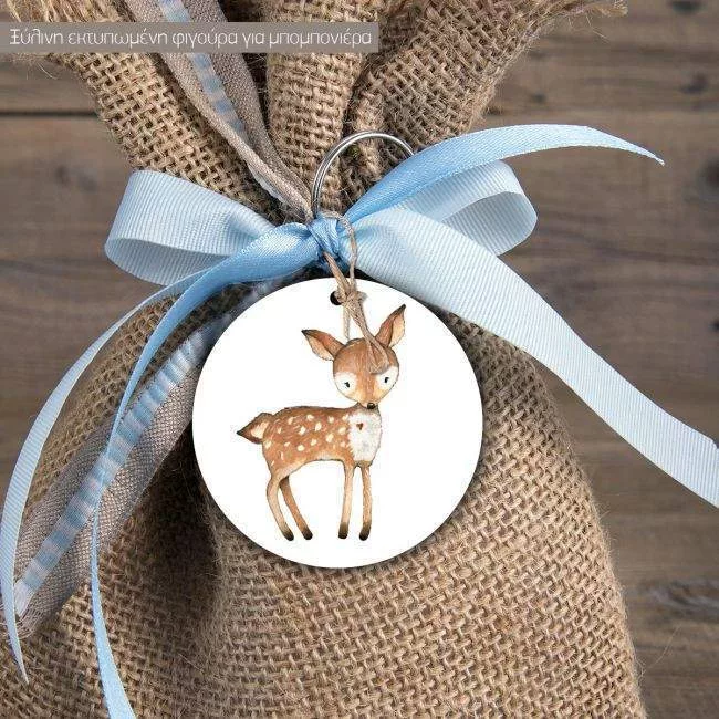 Wooden figure printed circular Woodland animals Boho
