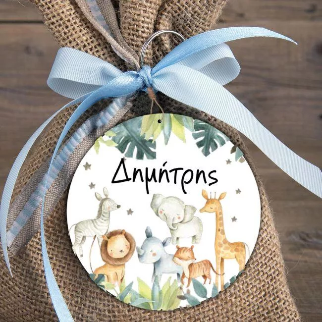Wooden figure printed circular Woodland animals Boho