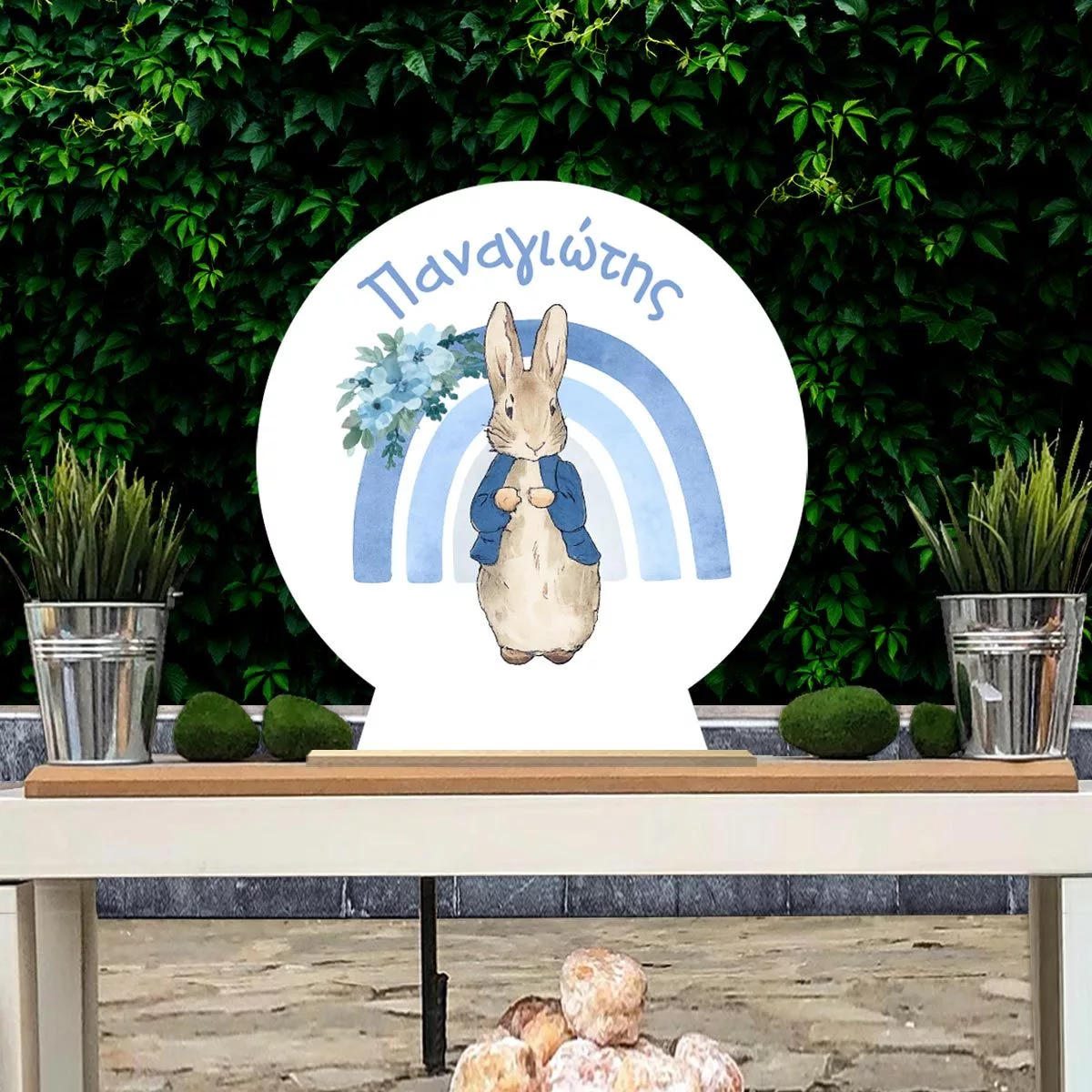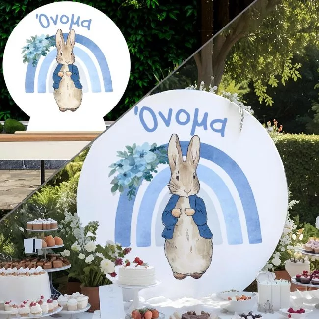 Wooden Baptism Sign. Peter Rabbit & Rainbow