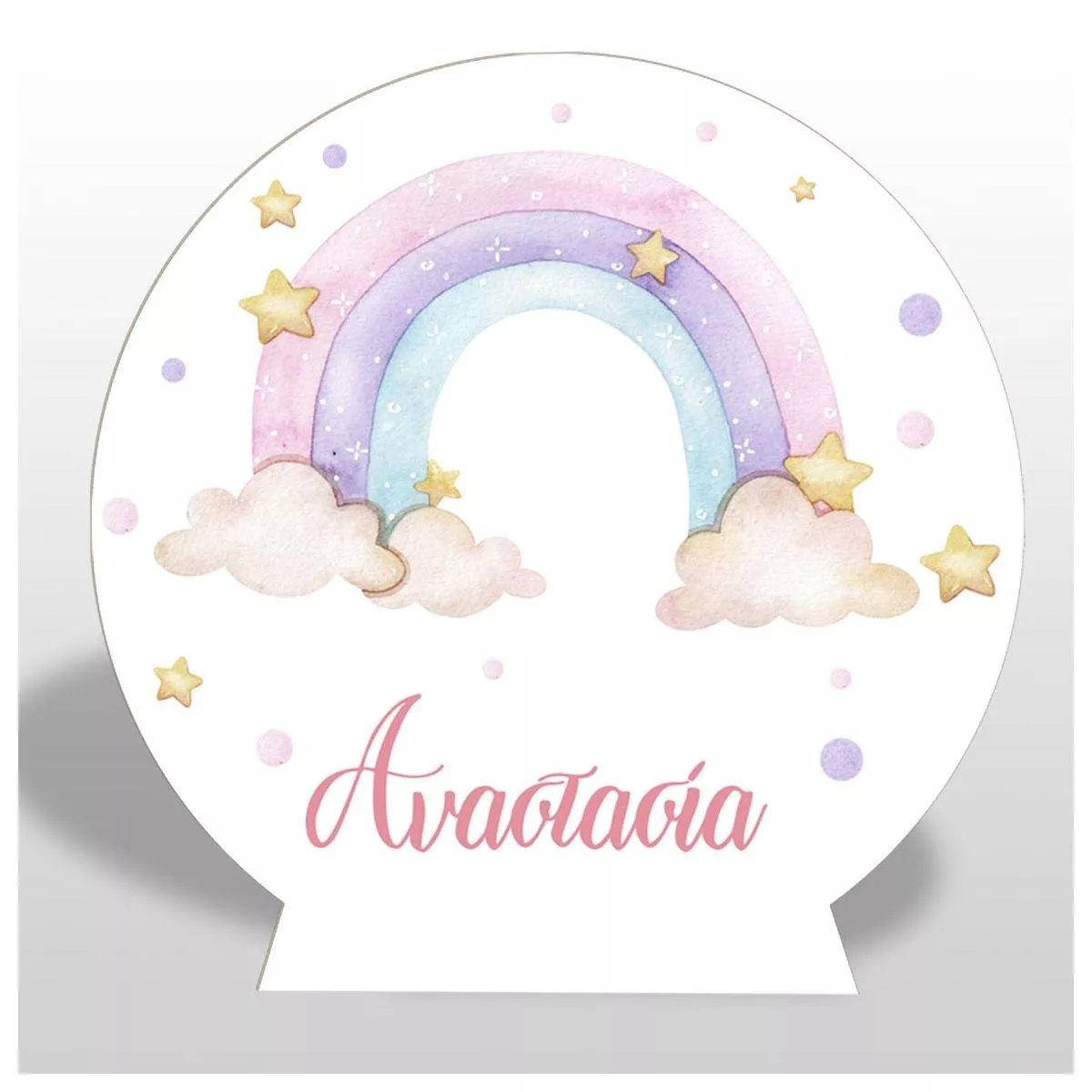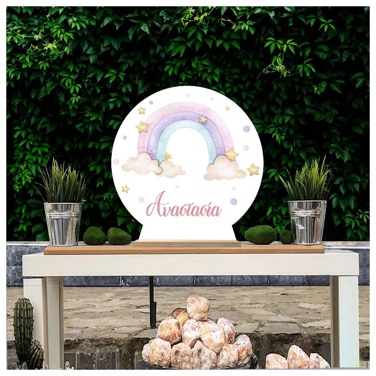 Wooden printed sign, Rainbow painted with clouds, personalized