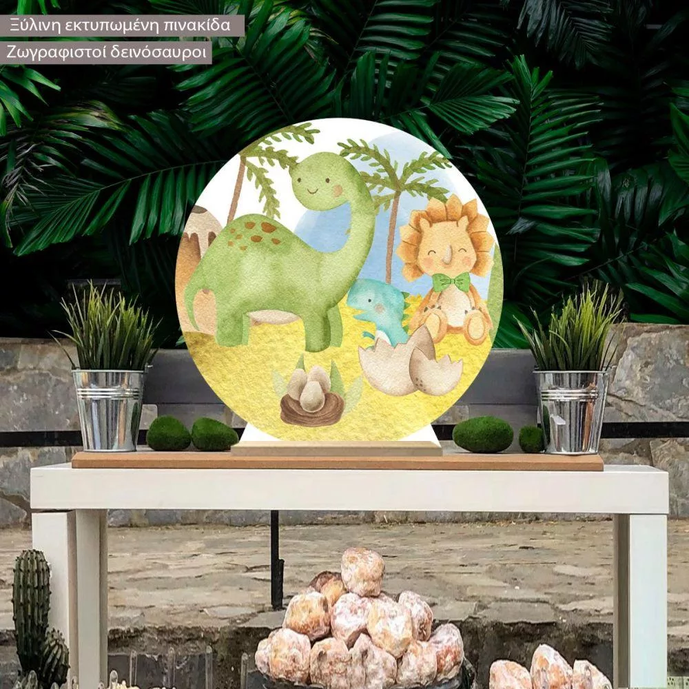 Wooden printed sign, Baby dinos watercolor