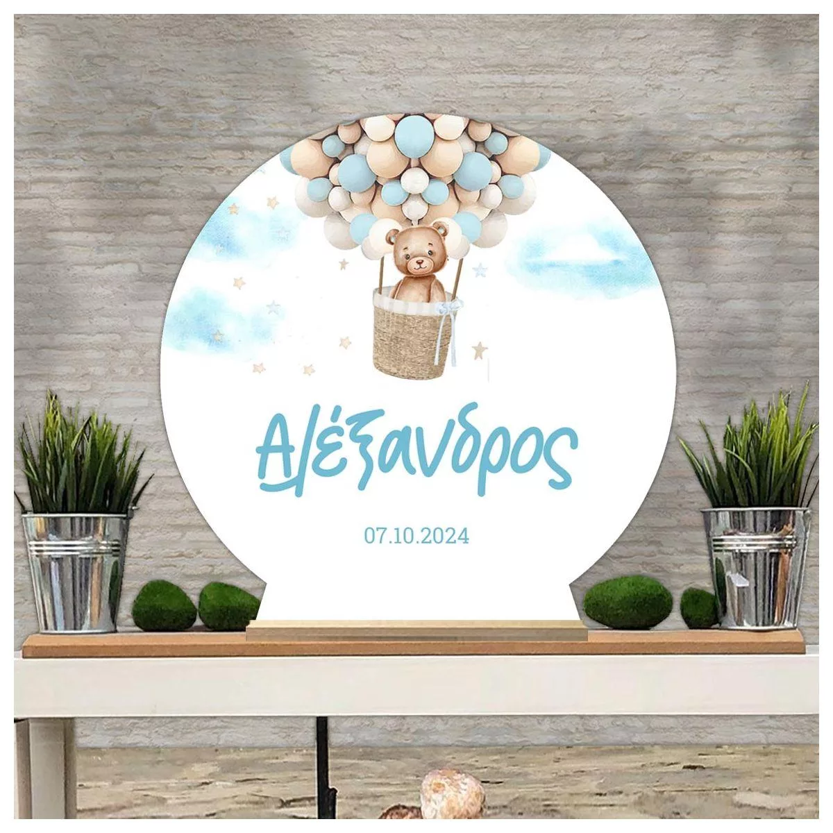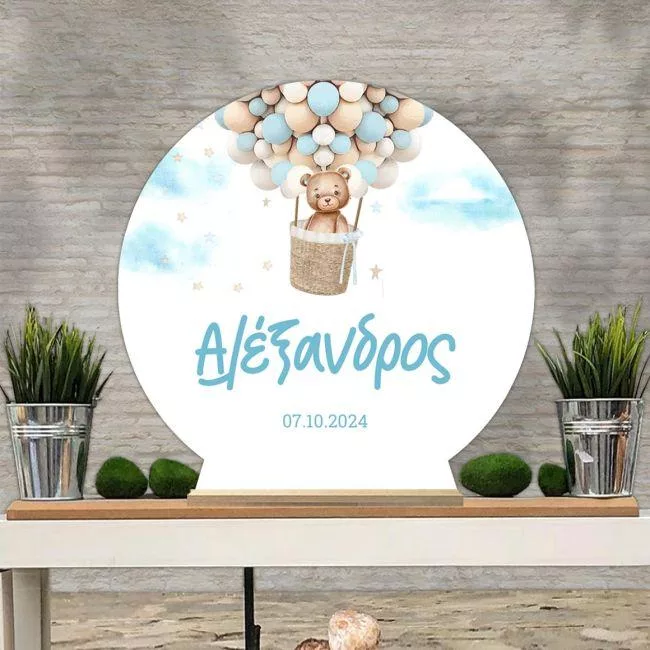 Wooden printed sign, Bear with balloons boy