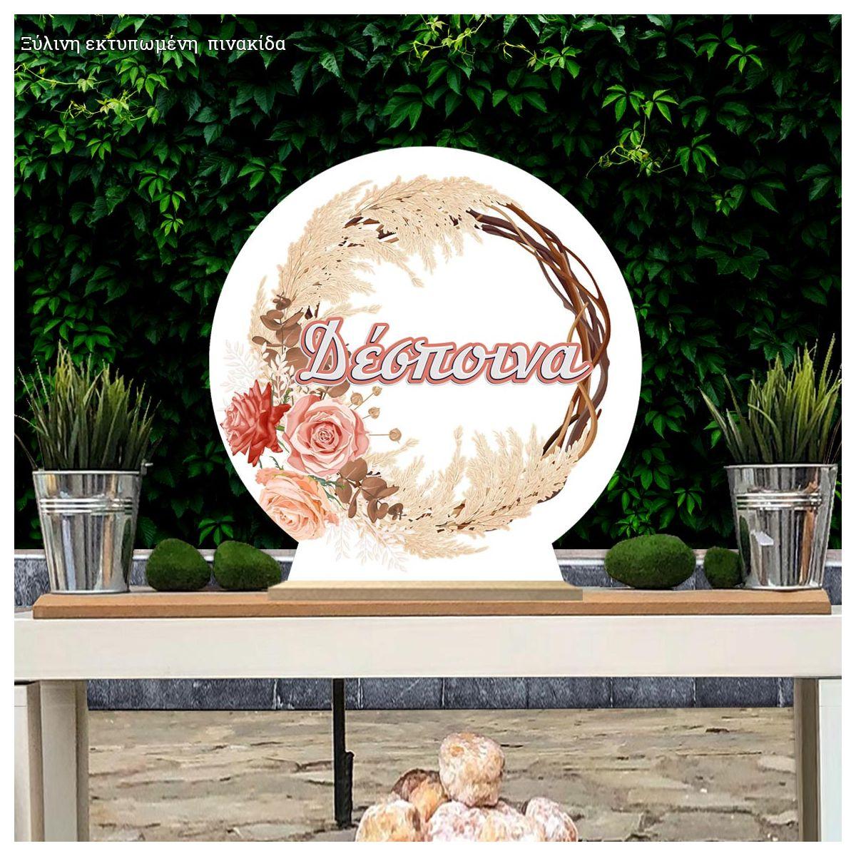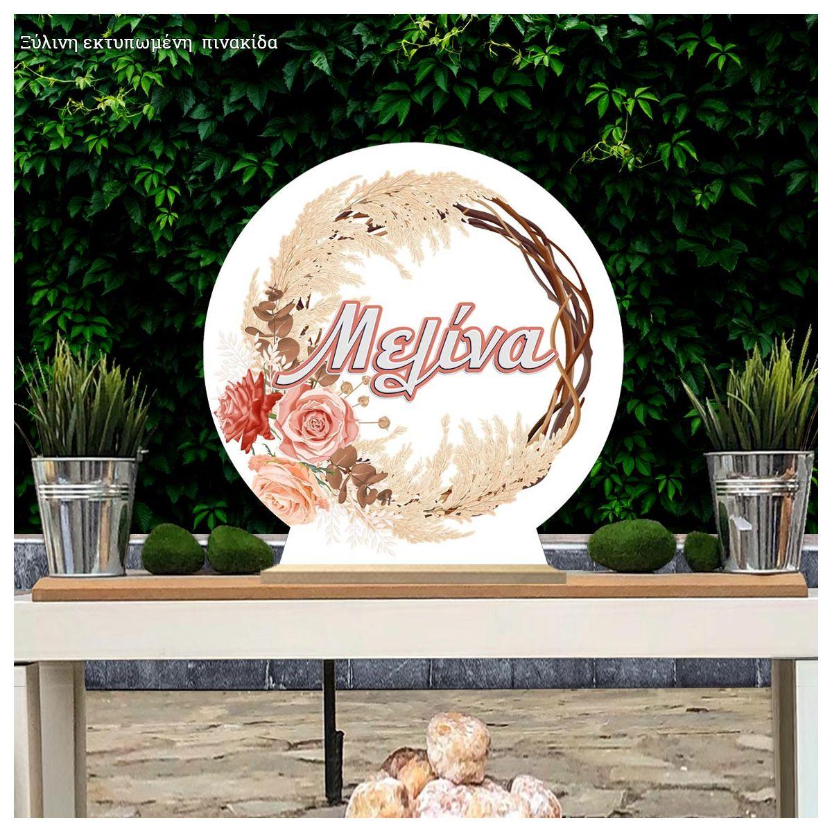 Wooden printed sign, Boho wreath I