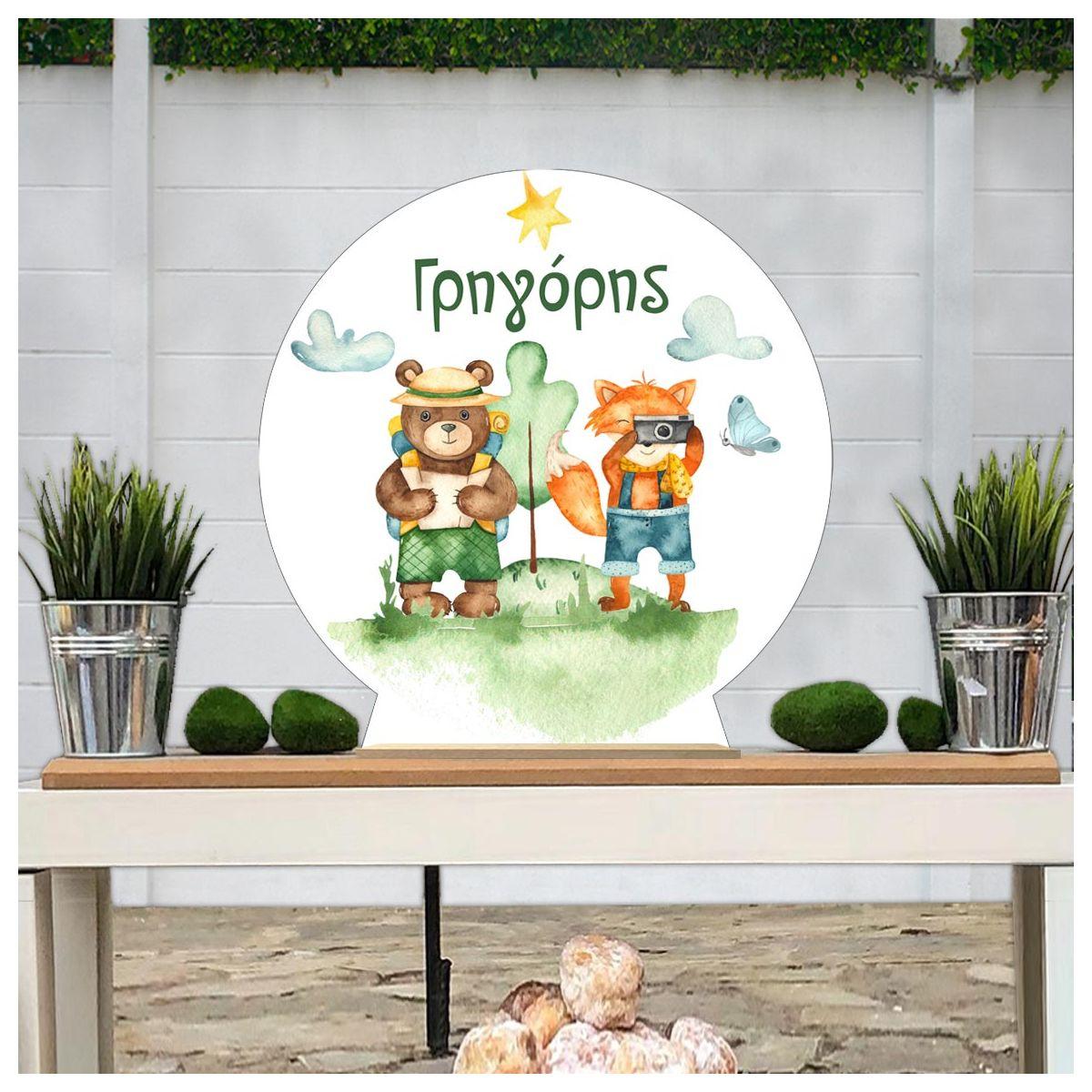Wooden printed sign, Camping animals