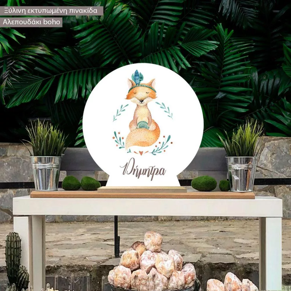 Wooden printed sign, Cute baby fox boho personalized