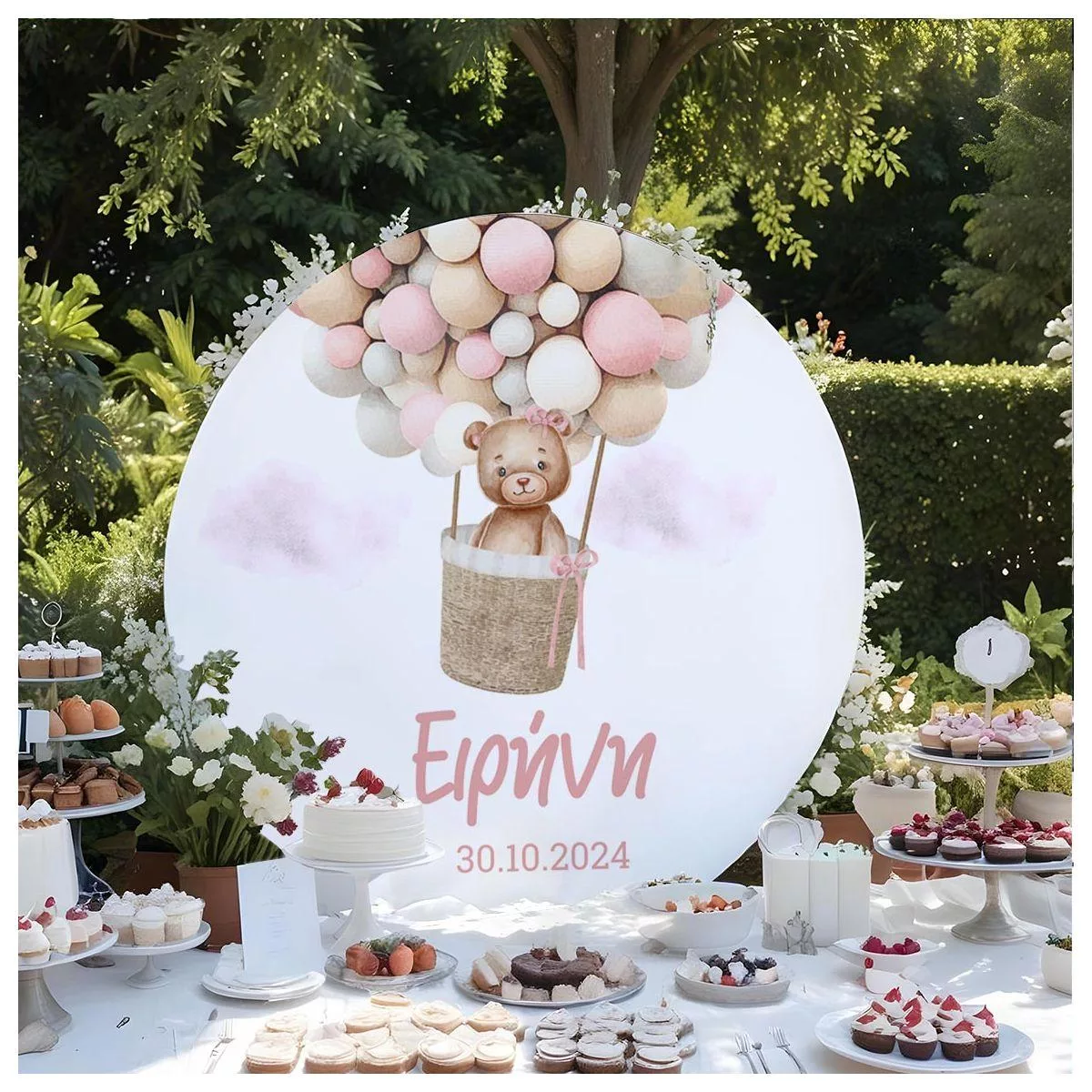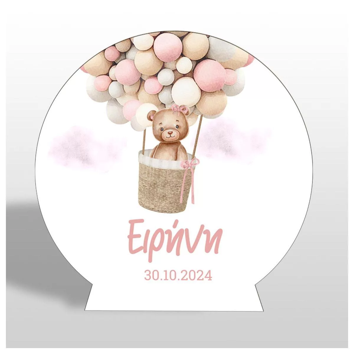 Wooden printed sign, Cute bear pink balloons