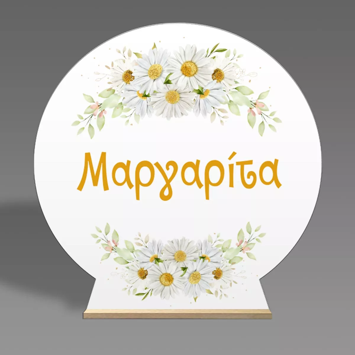Wooden sign for baptism candy bar or party, featuring daisy design and personalized name. Ideal decoration.