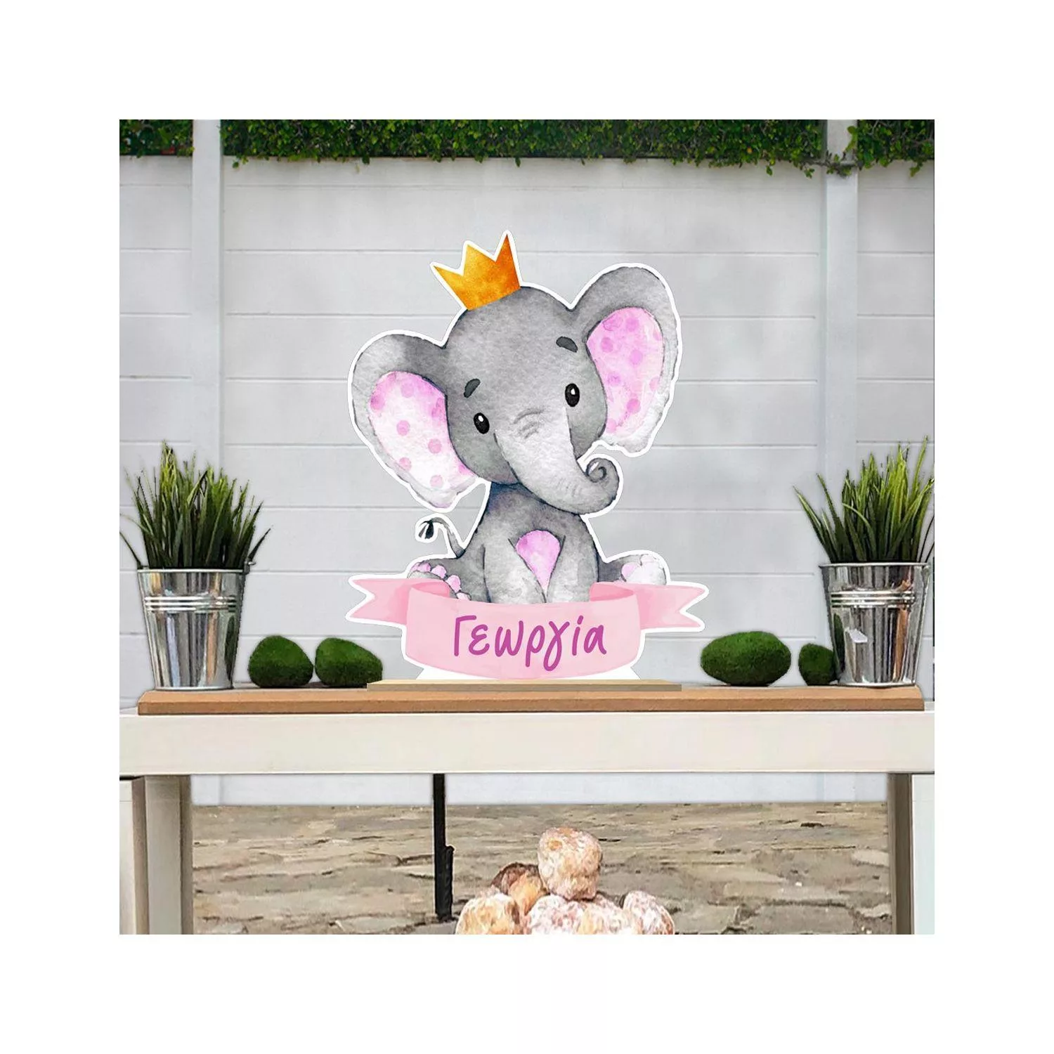 Wooden printed sign, Elephant custom name girl