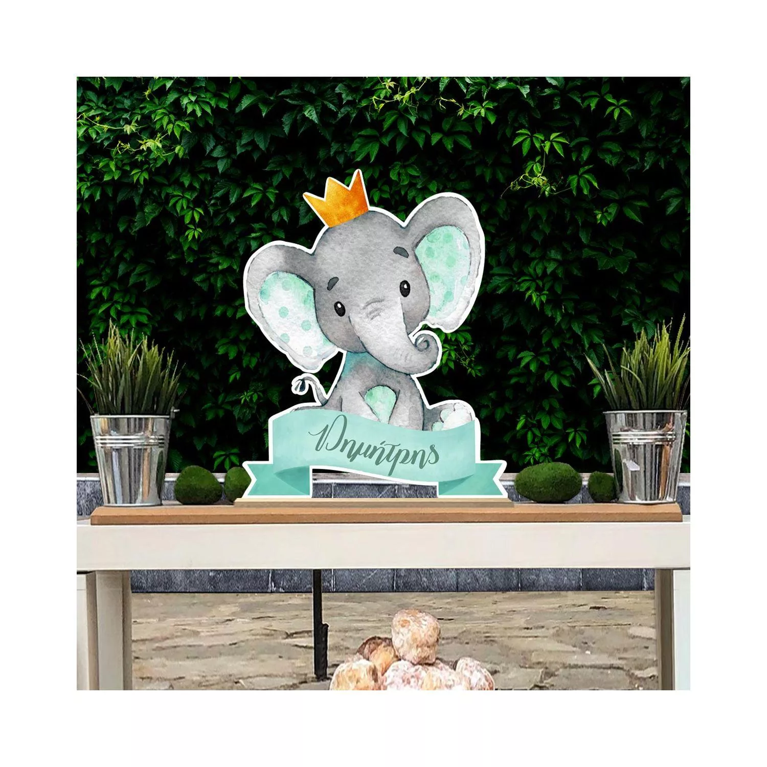 Wooden printed sign, Elephant mint with crown custom name