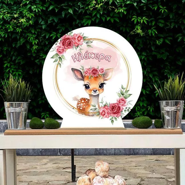 Wooden printed sign, Fawn red flowers