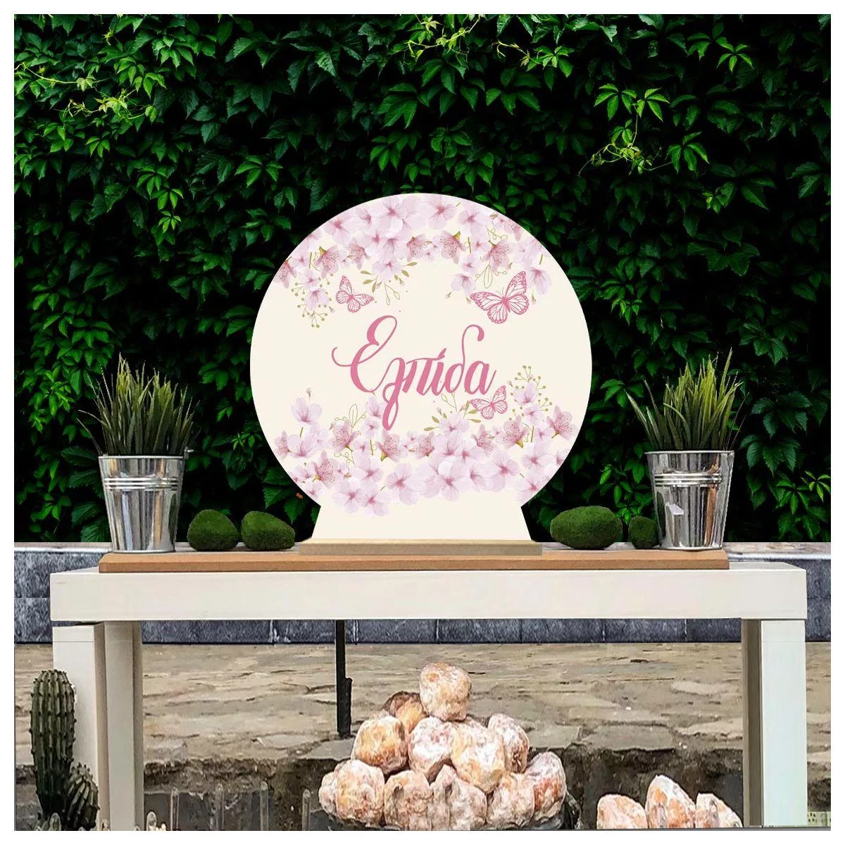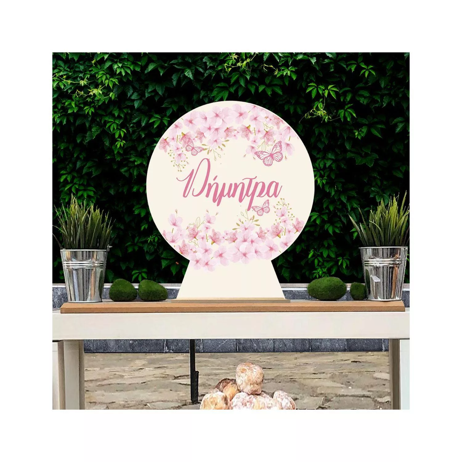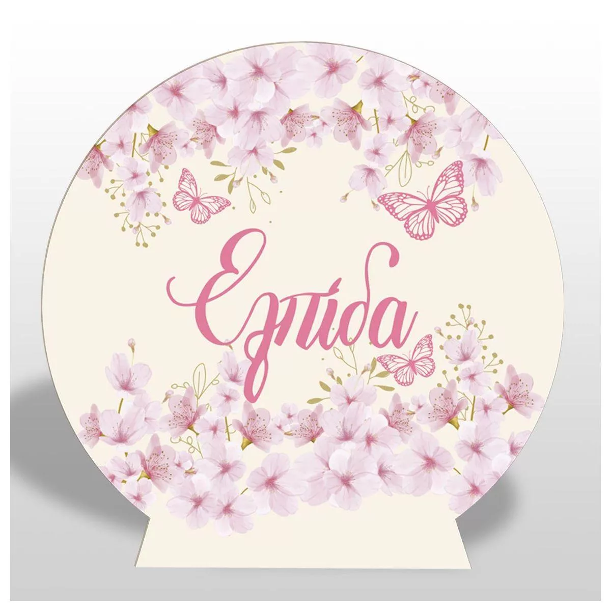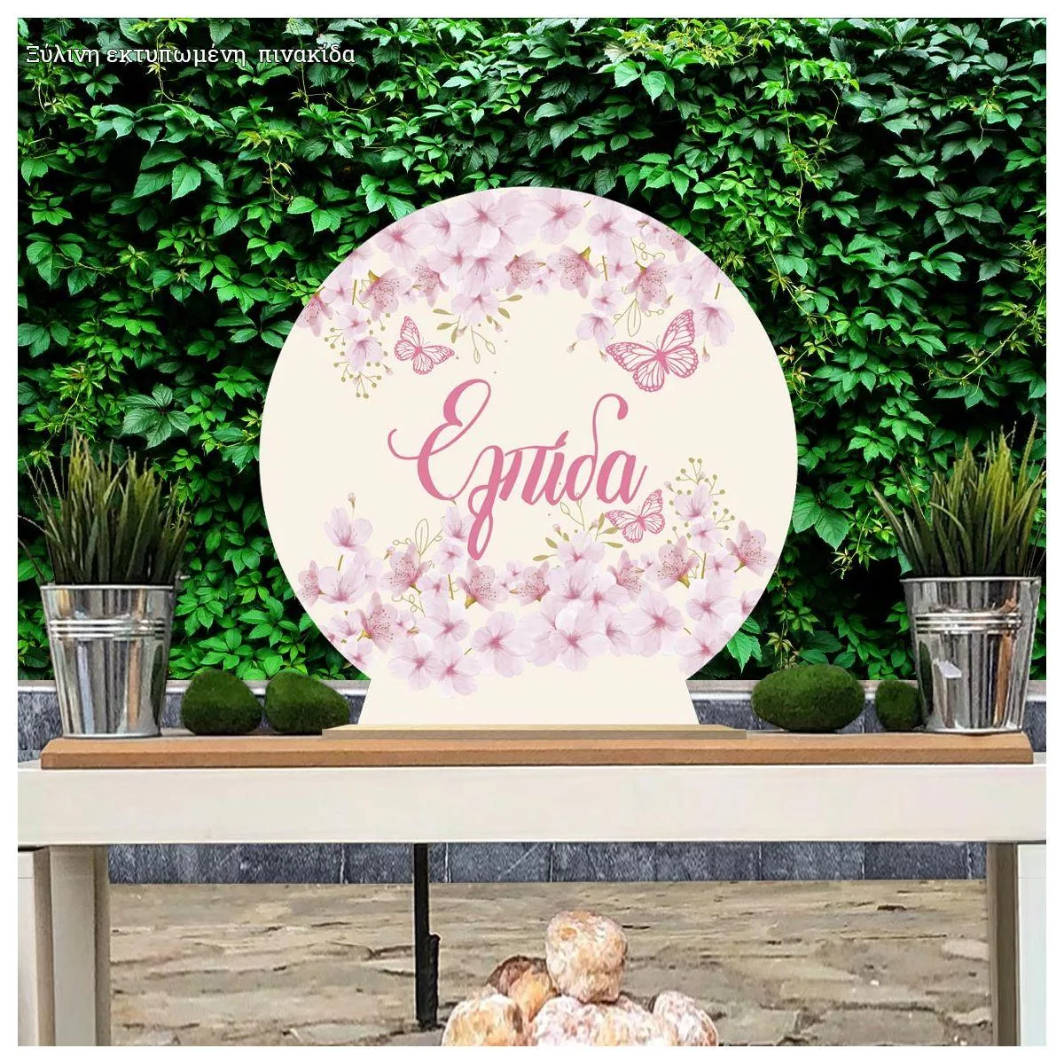 Wooden printed sign, Flowers butterflies pink