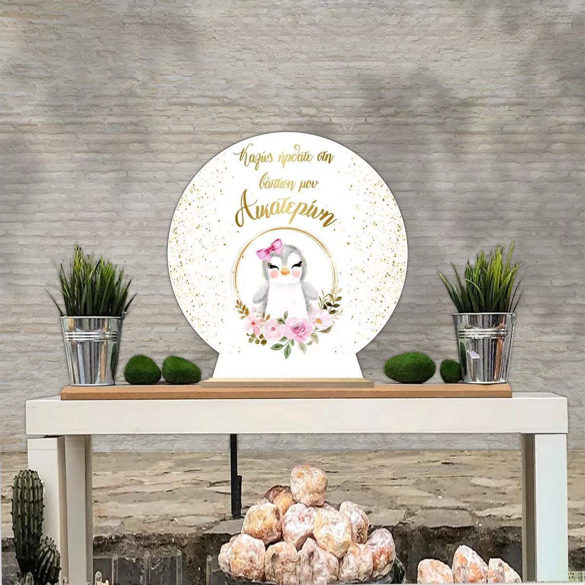 Wooden printed sign, Golden circles with animal and flowers