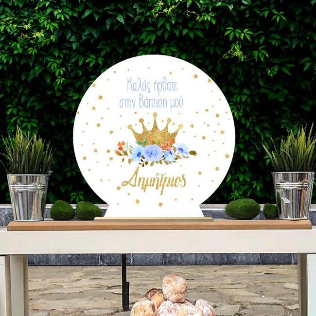 Wooden printed sign, Golden crown and blue roses