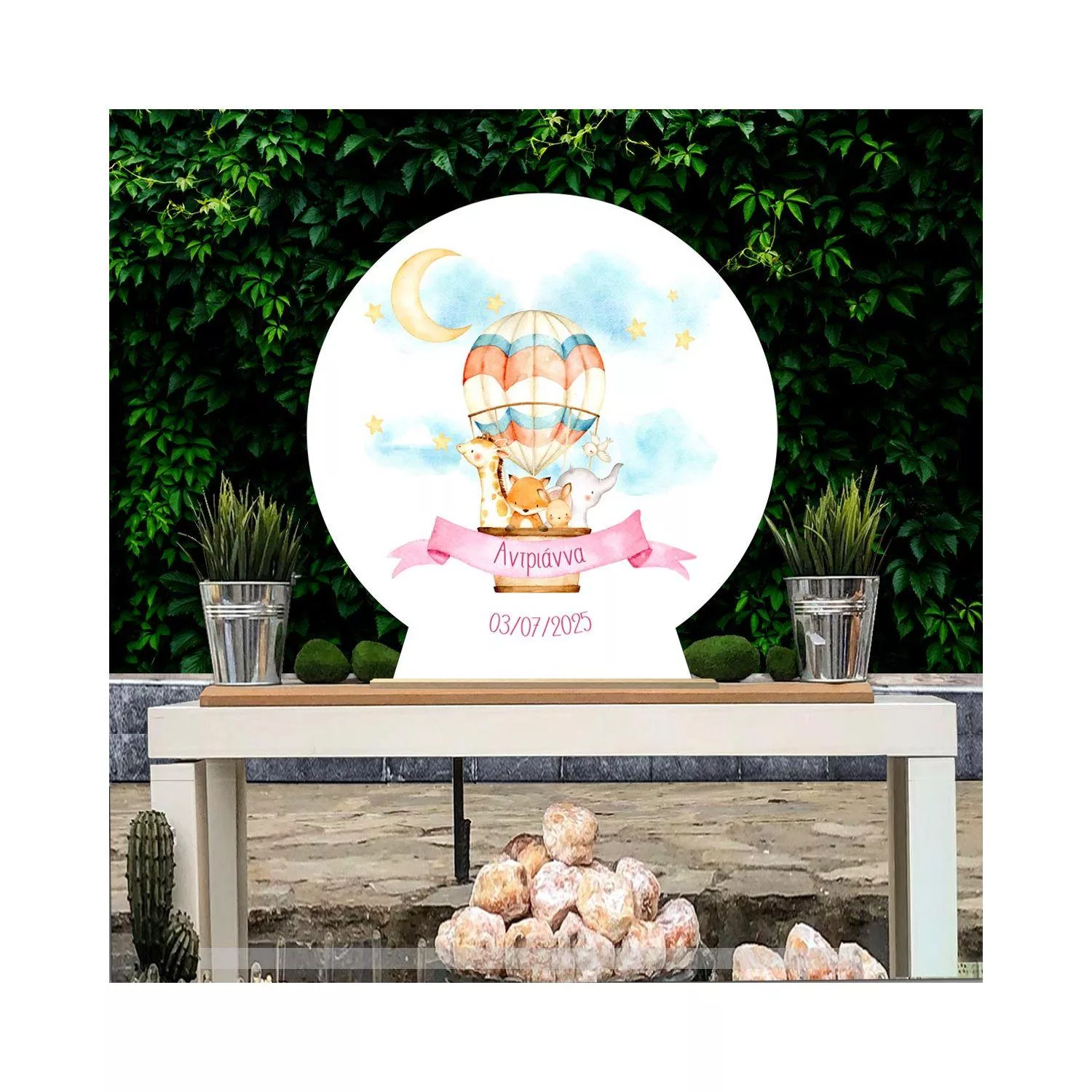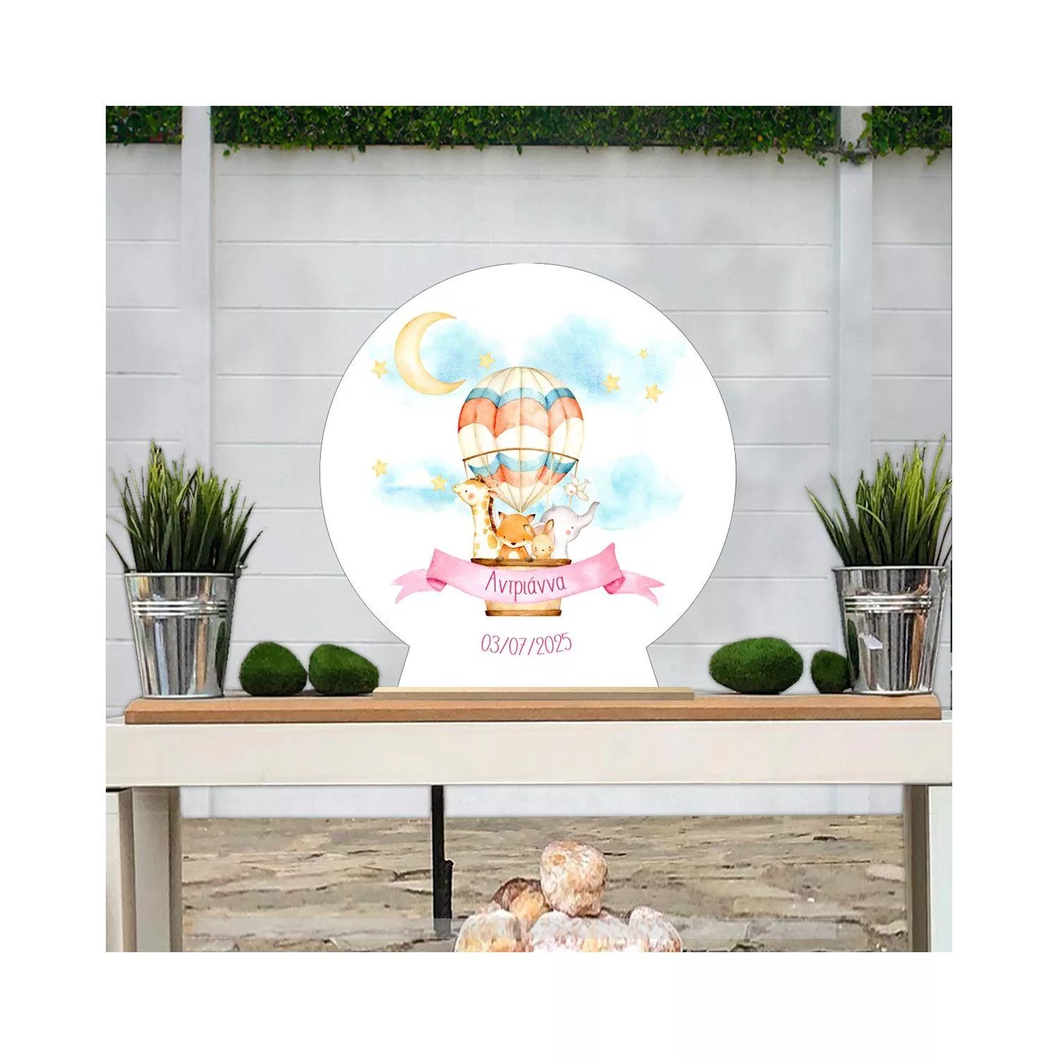 Wooden printed sign, Hot air balloon hand drawn animals art II