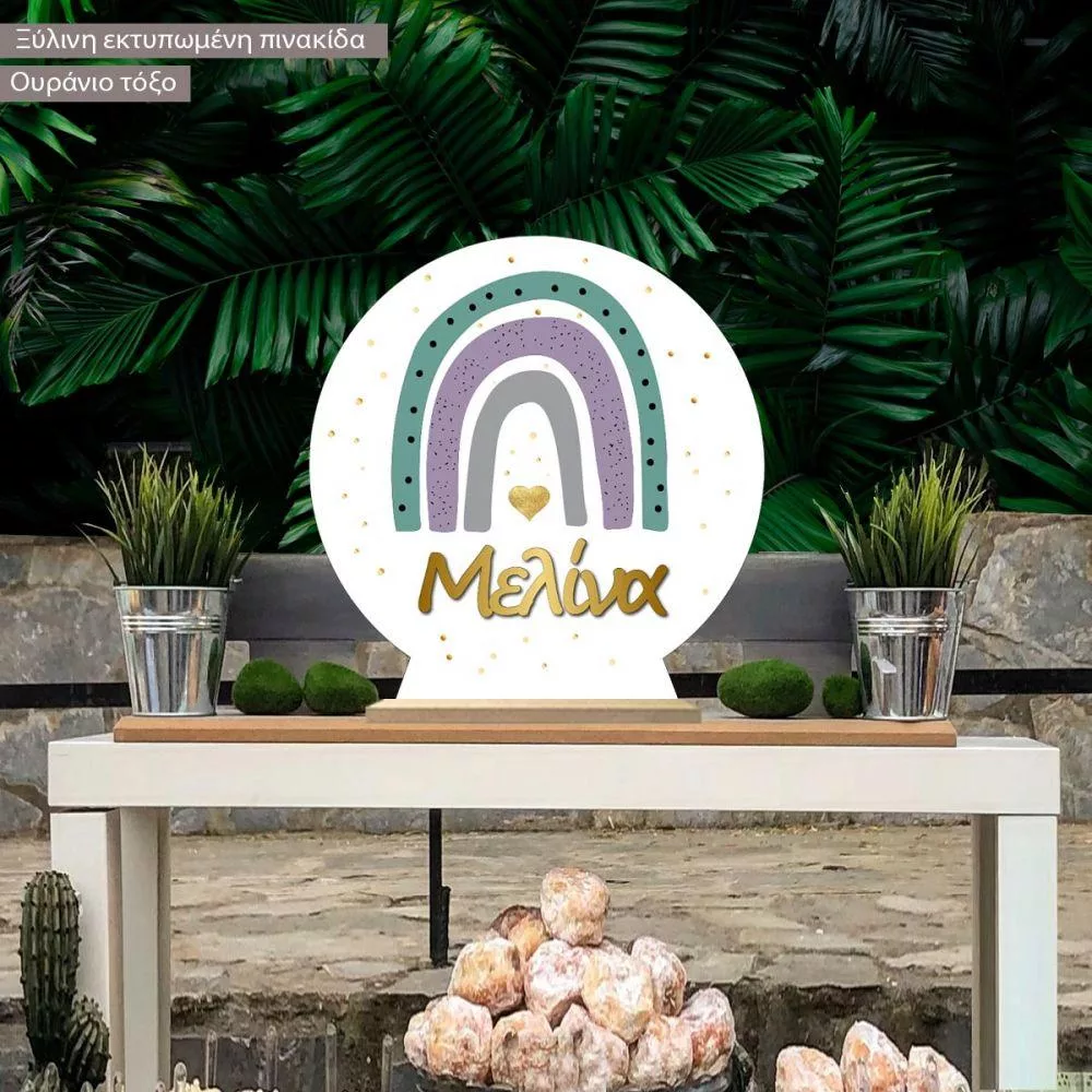 Wooden printed sign, Rainbow golden particles