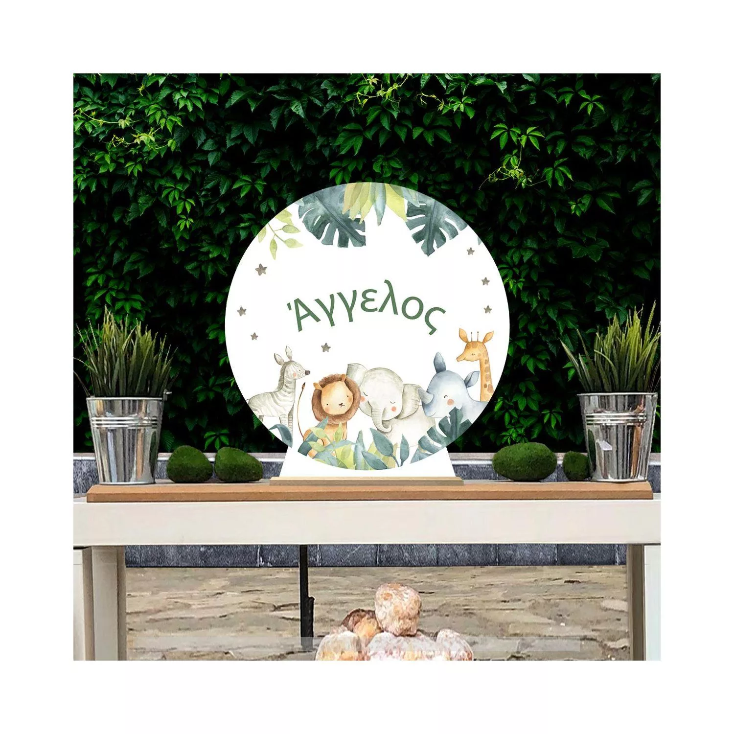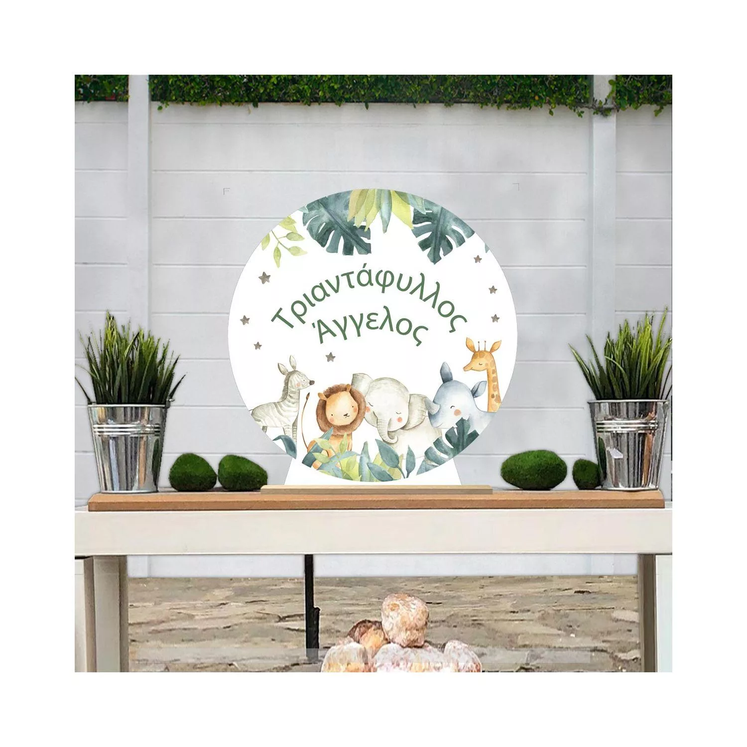 Wooden printed sign, safari animals watercolor personalized