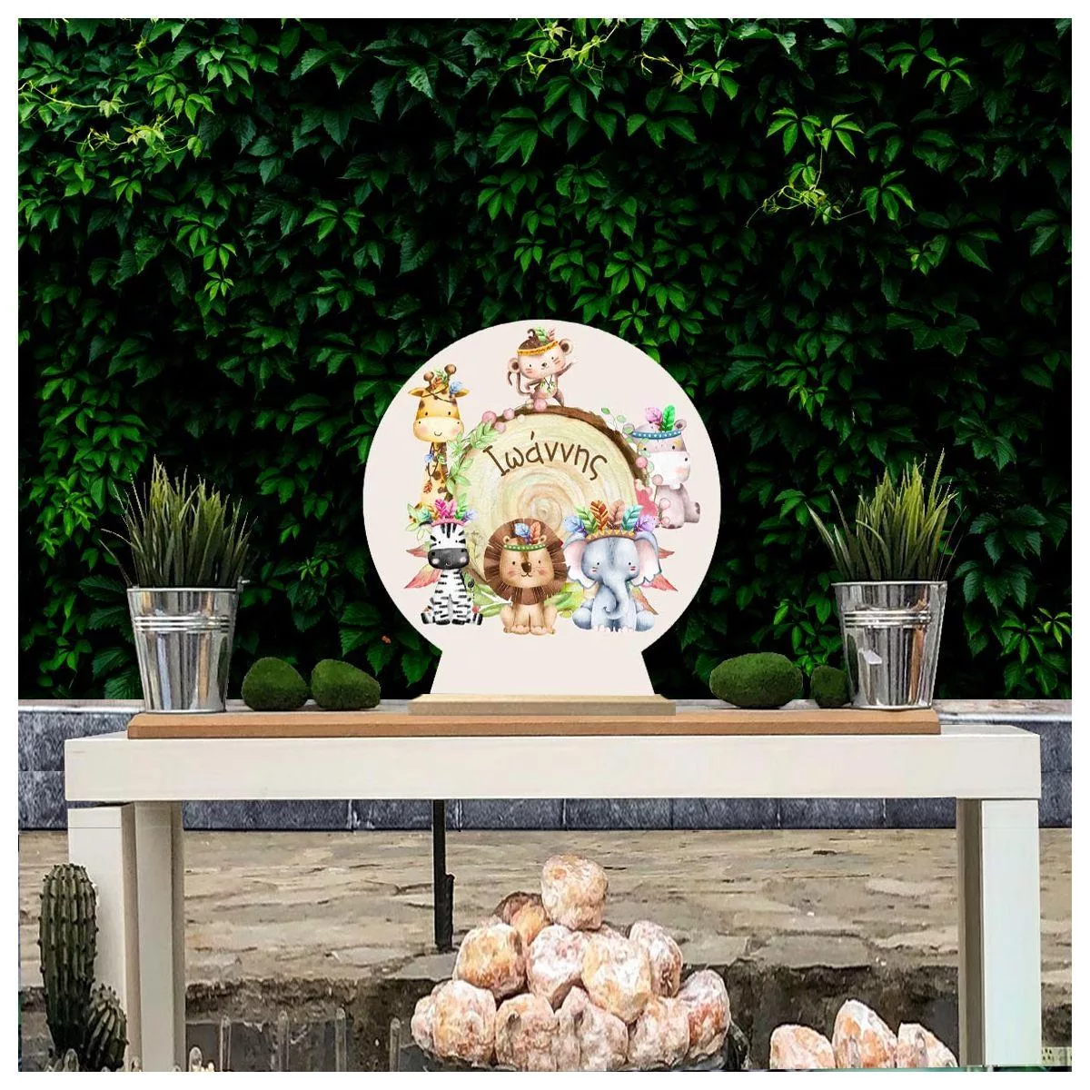 Wooden printed sign, Safari tribal animals stump