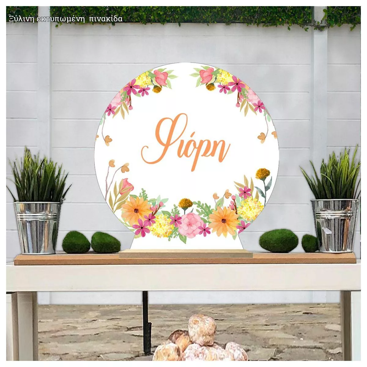Wooden printed sign, spring watercolor flowers