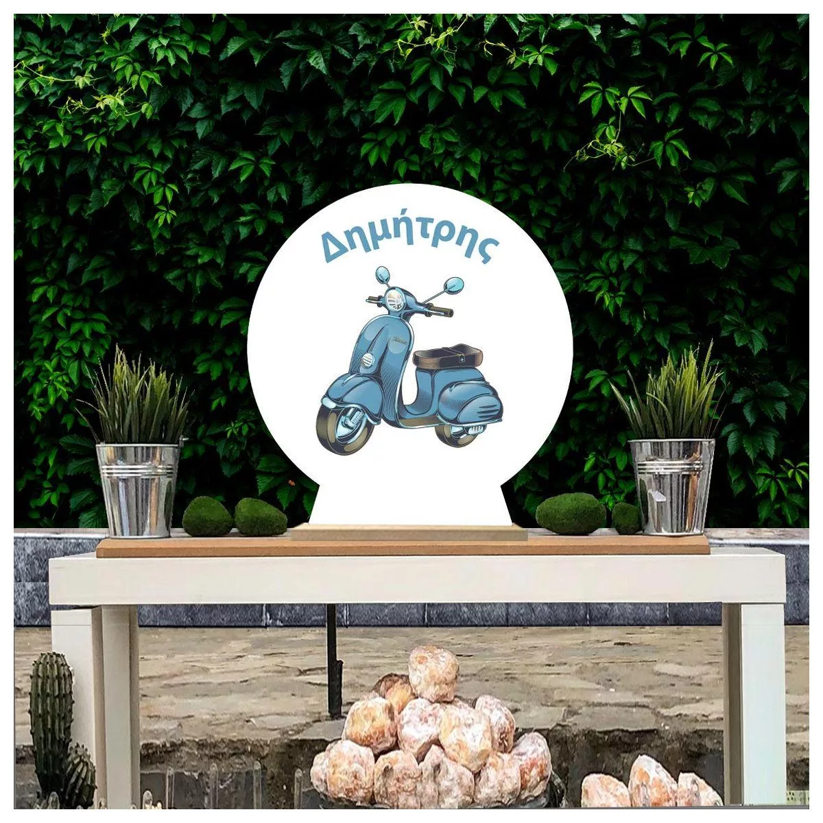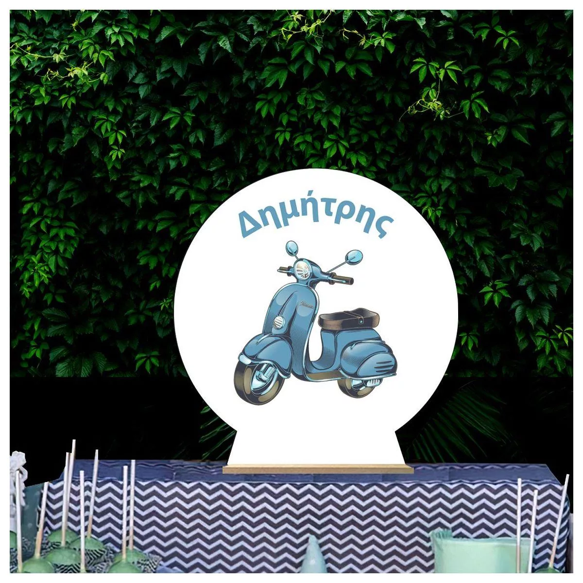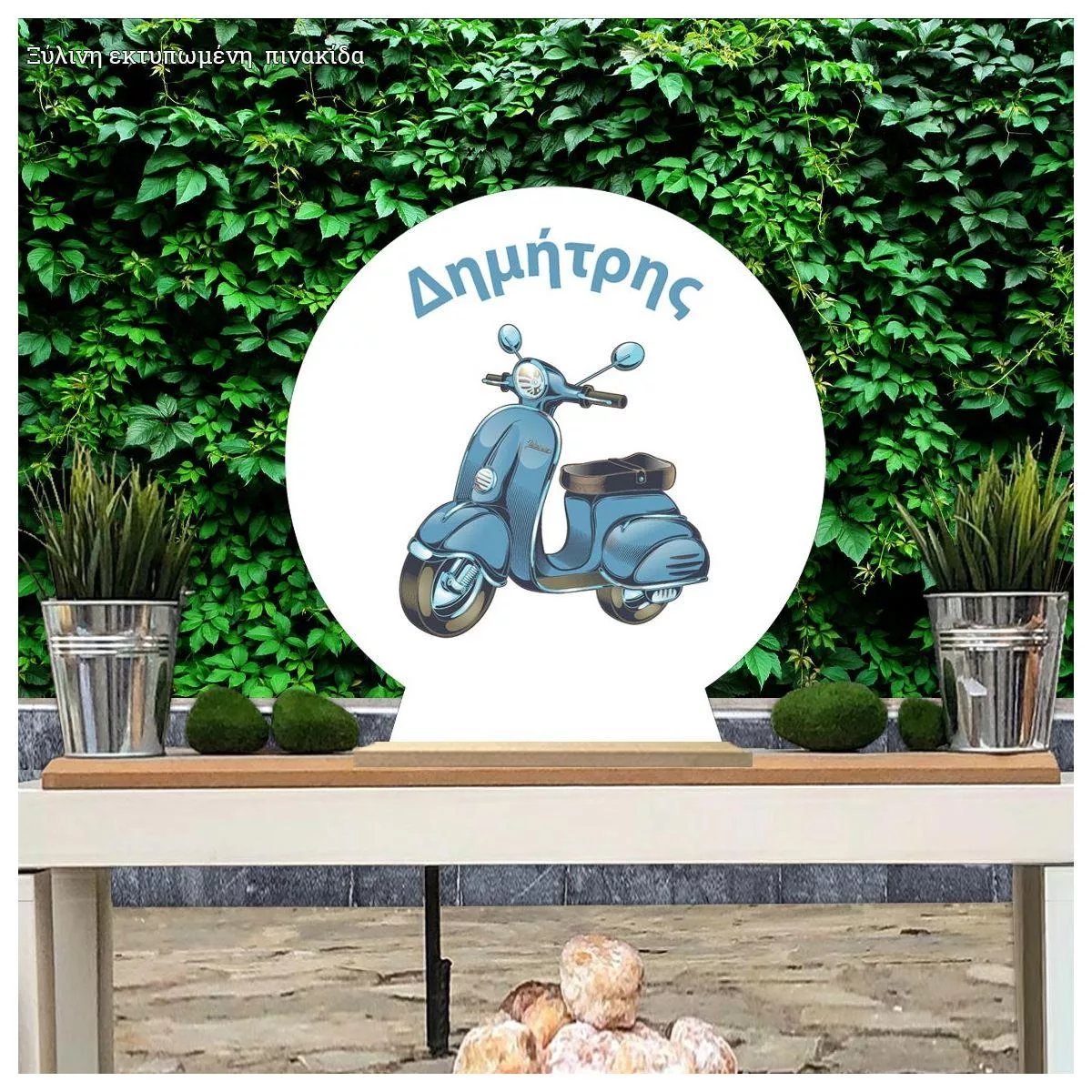 Wooden printed sign, Vespa vintage blue