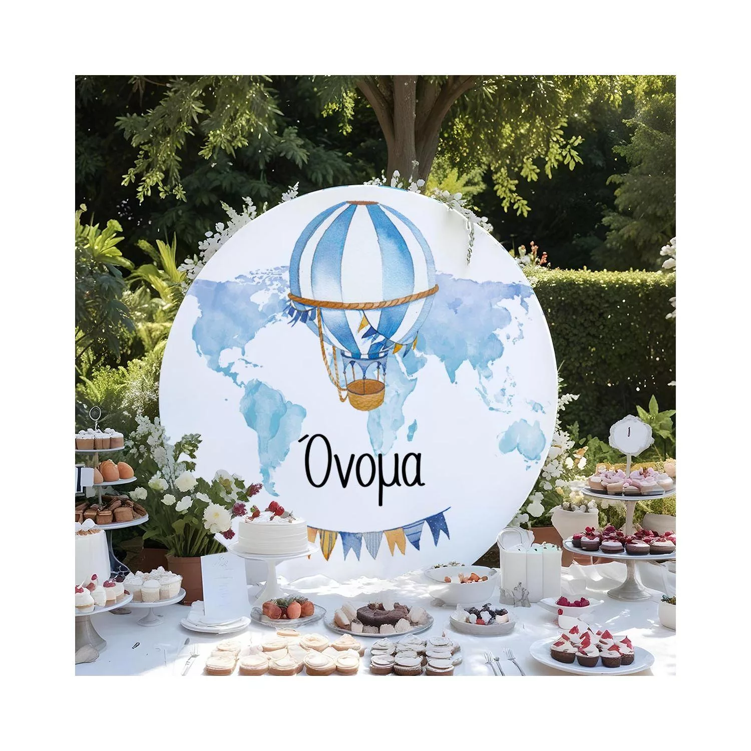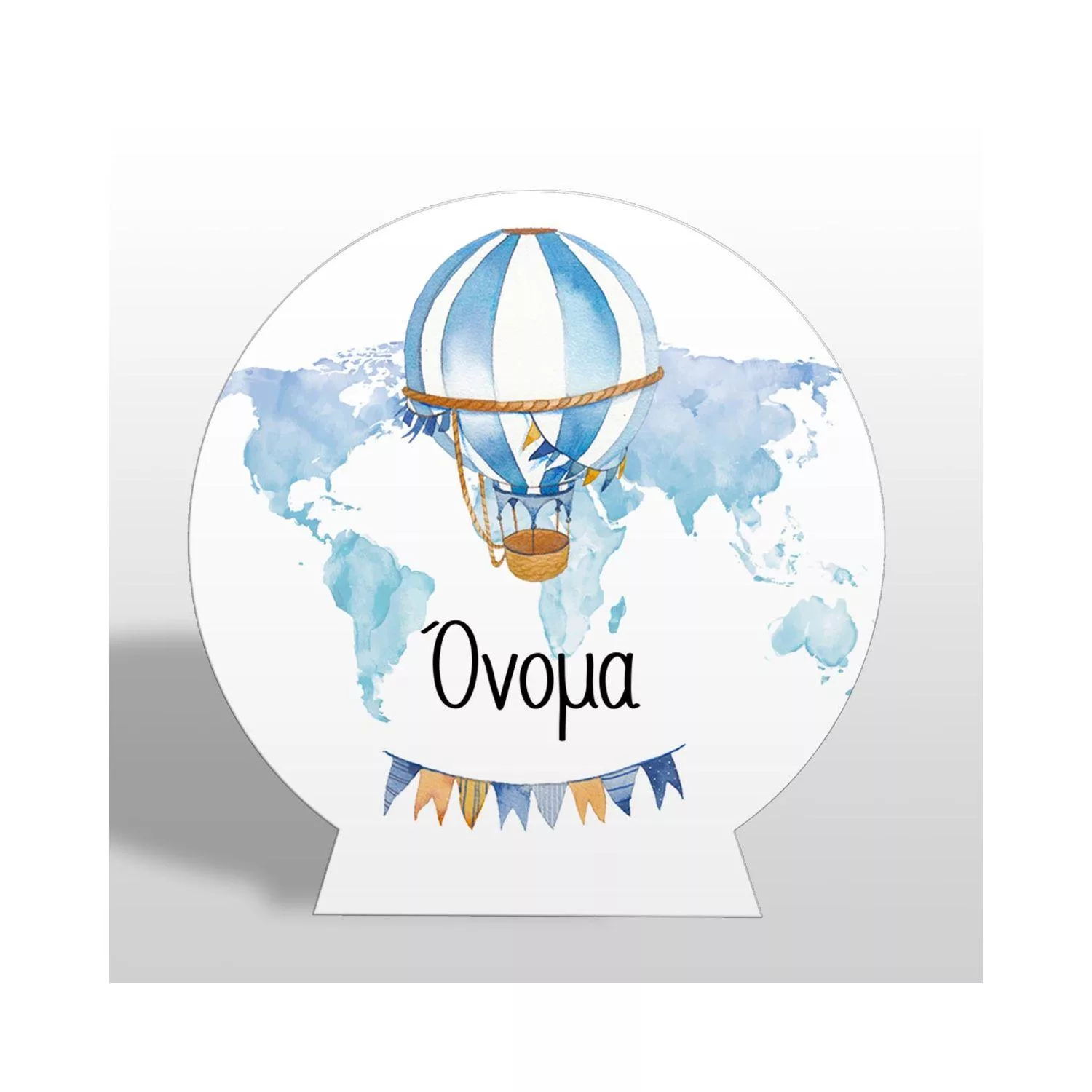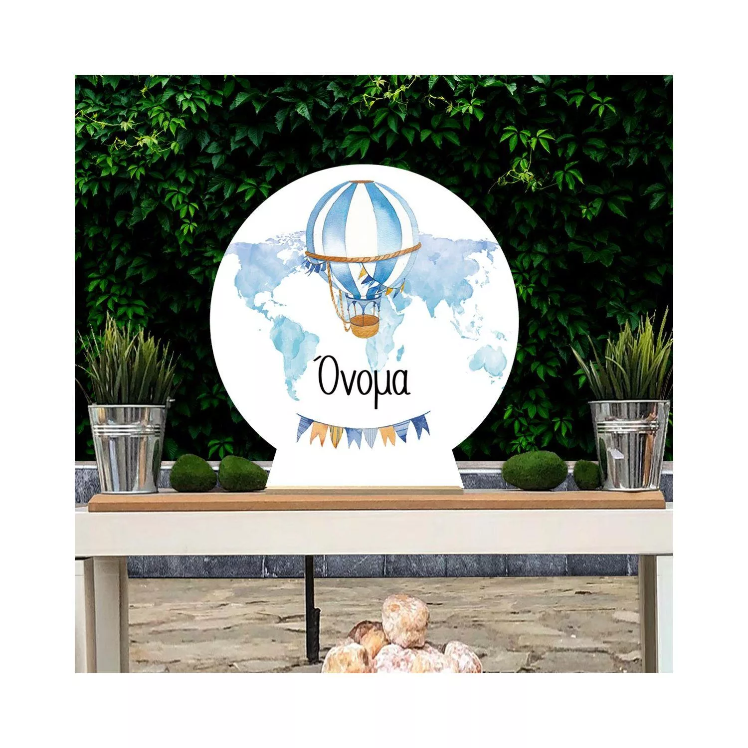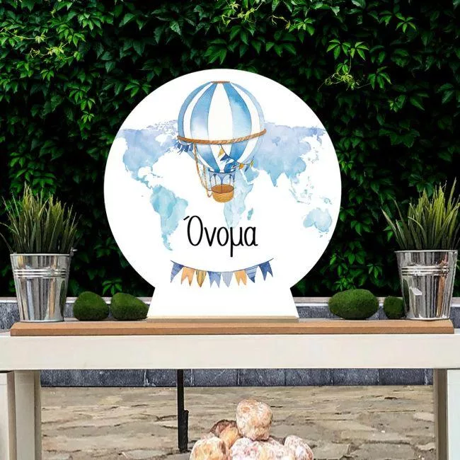Wooden printed sign, Watercolor balloon and map, with name, blue