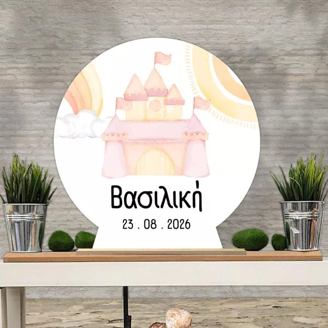 Wooden sign, Castle and Rainbow