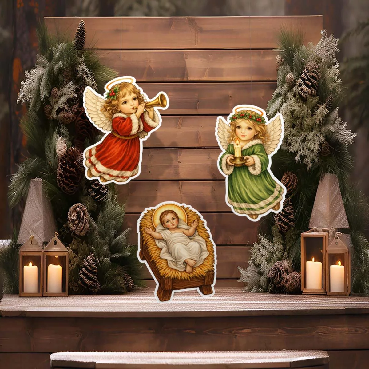 Wooden figures, Jesus and 2 little angels art 2