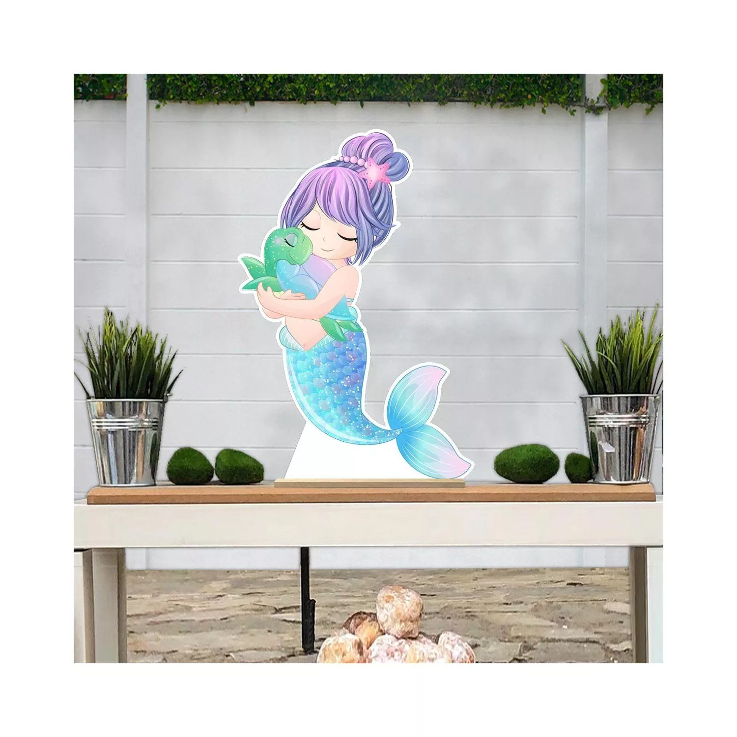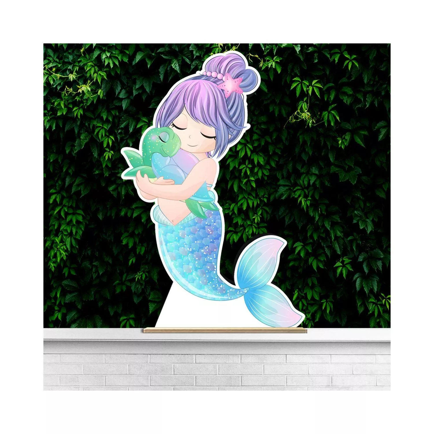 Wooden decorative figure printed Mermaid and turtle