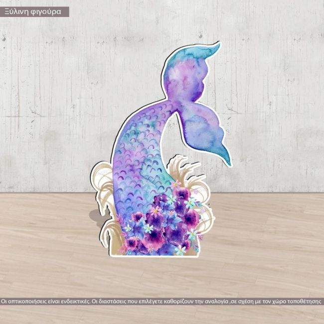 Wooden decorative figure printed Mermaid tail