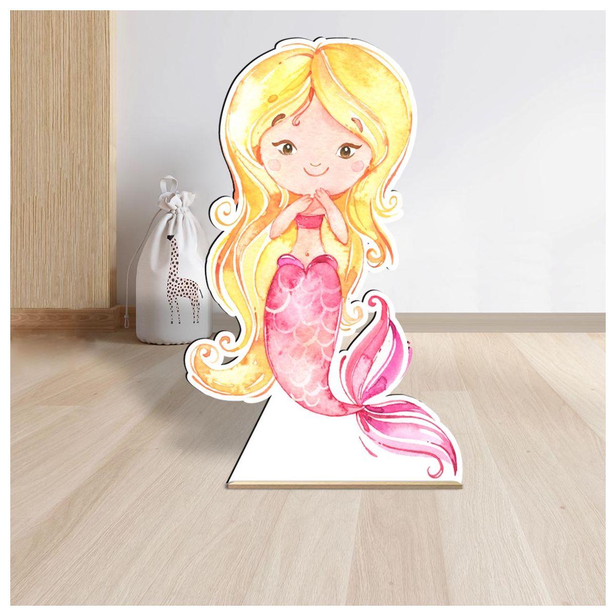 Wooden decorative figure printed Watercolor Mermaid art blonde hair