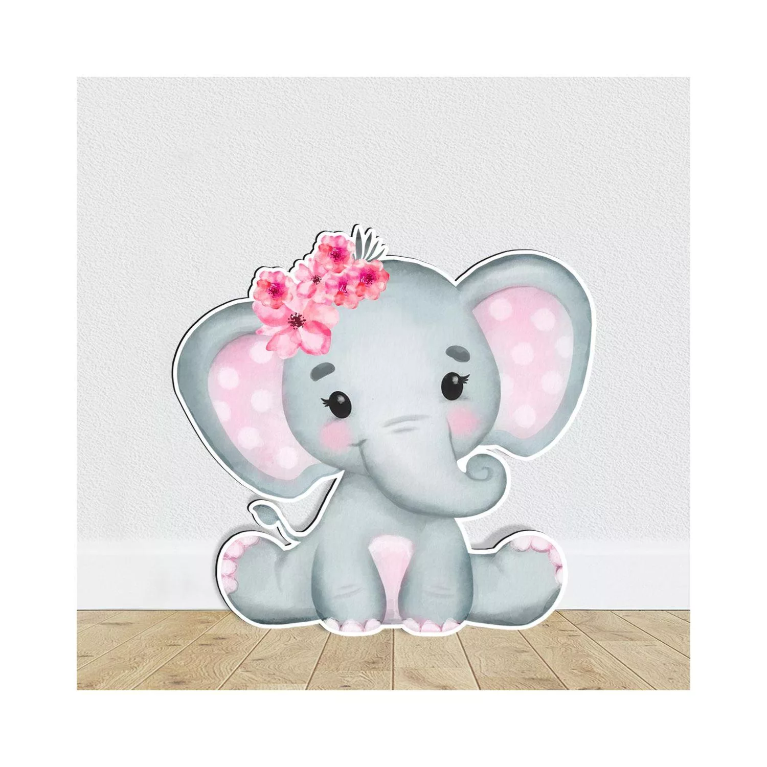 Wooden figure Elephant watercolor girly with flowers