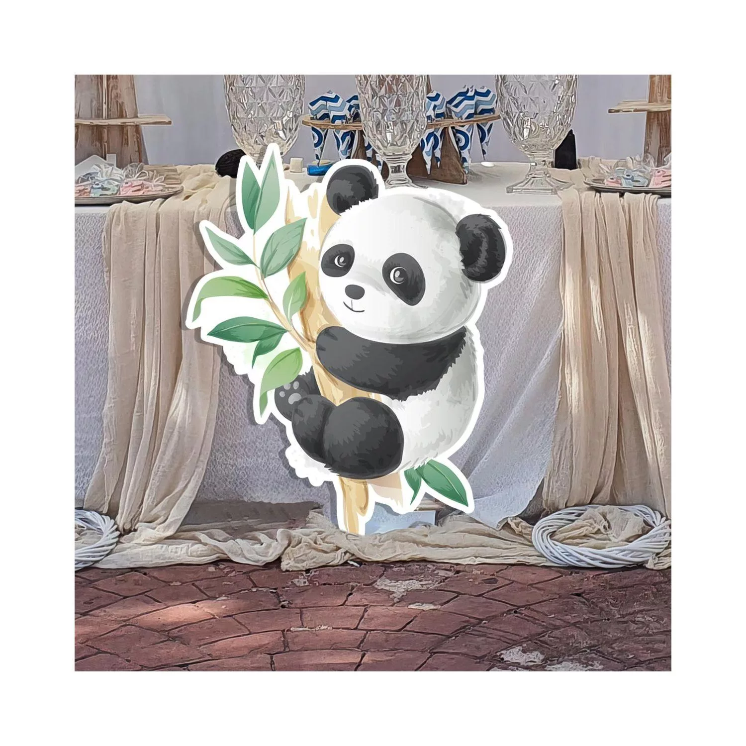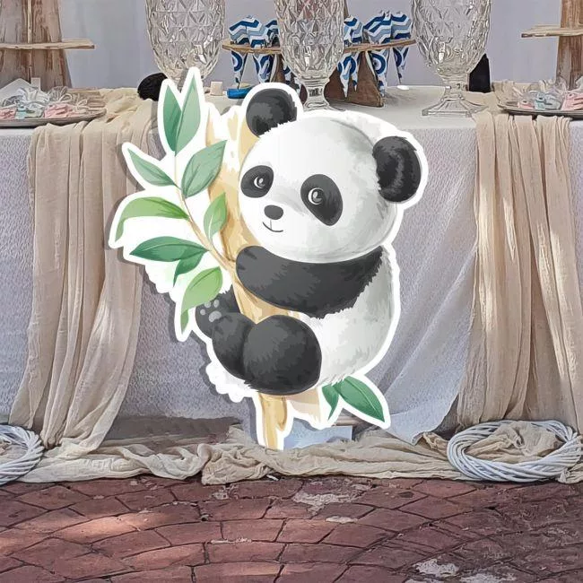 Wooden figure printed Baby panda on branch